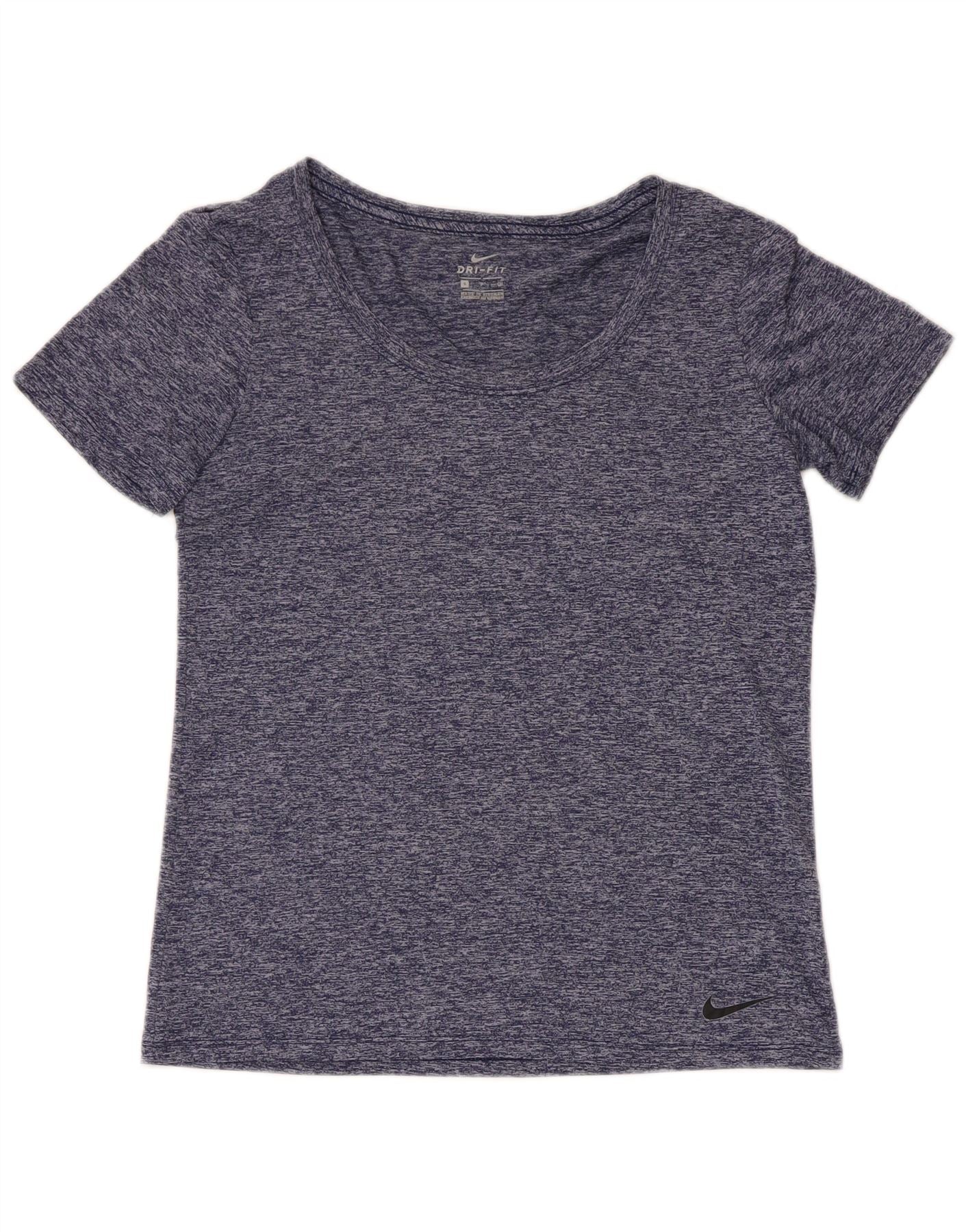 Home > Nike > aux femmes > Hauts > Nike Womens Dri Fit T-Shirt Top UK 10 Petit Bleu Marine Moucheté Polyester