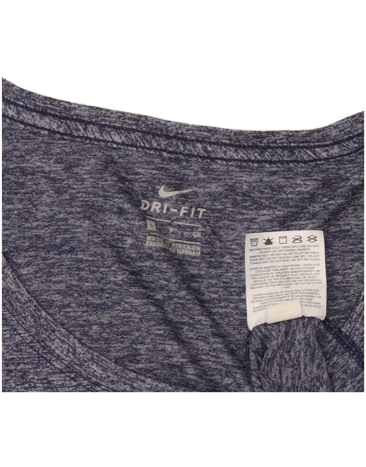 Nike Womens Dri Fit T-Shirt Top UK 10 Petit Bleu Marine Moucheté Polyester