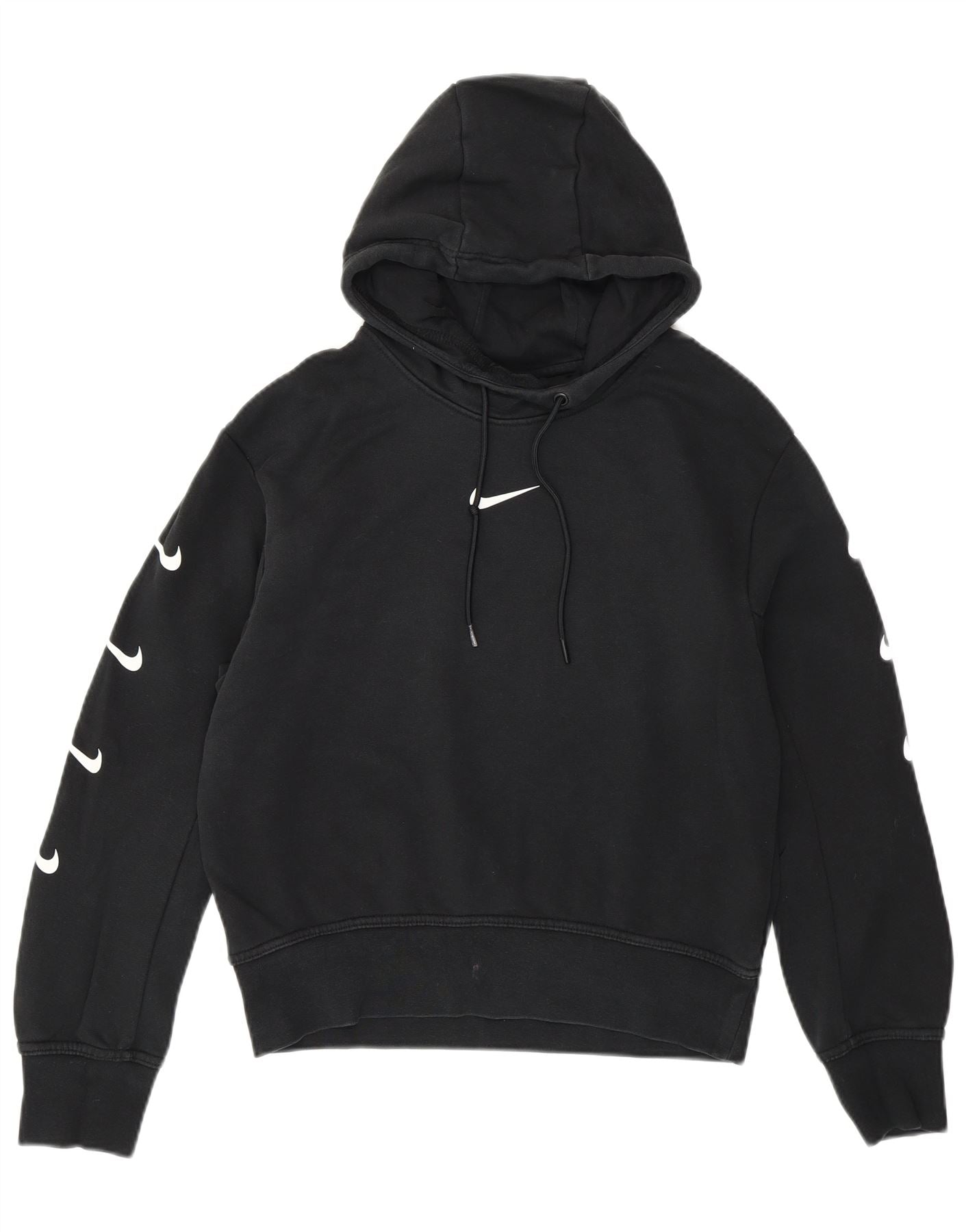 Nike Pull à capuche graphique pour femme UK 14 en coton noir moyen