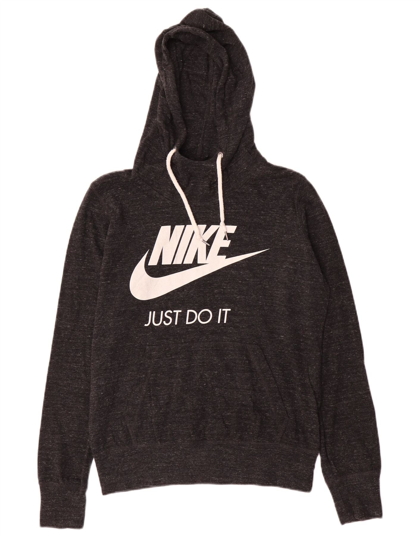 NIKE Pull à capuche graphique pour femme UK 14 Coton moucheté gris moyen