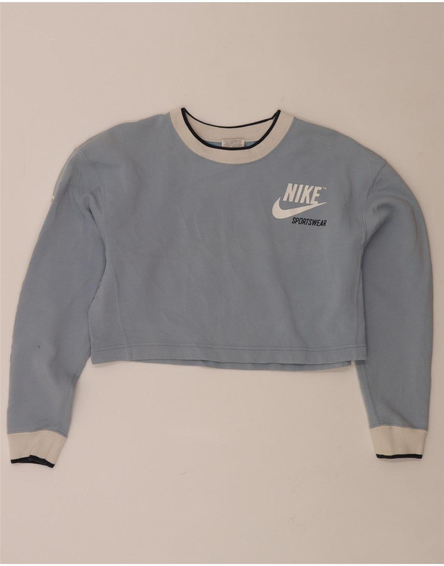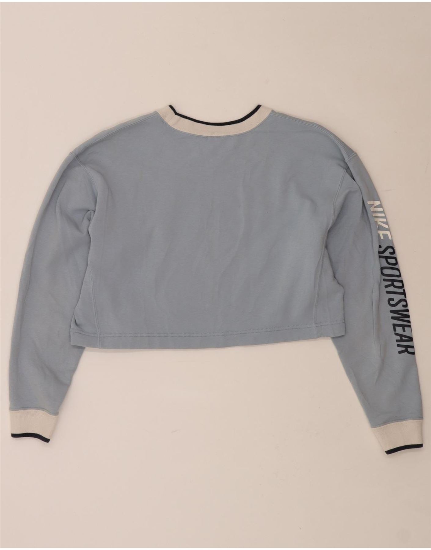 NIKE Womens Oversized Crop Sweatshirt Jumper UK 14 Medium Blue Colourblock
