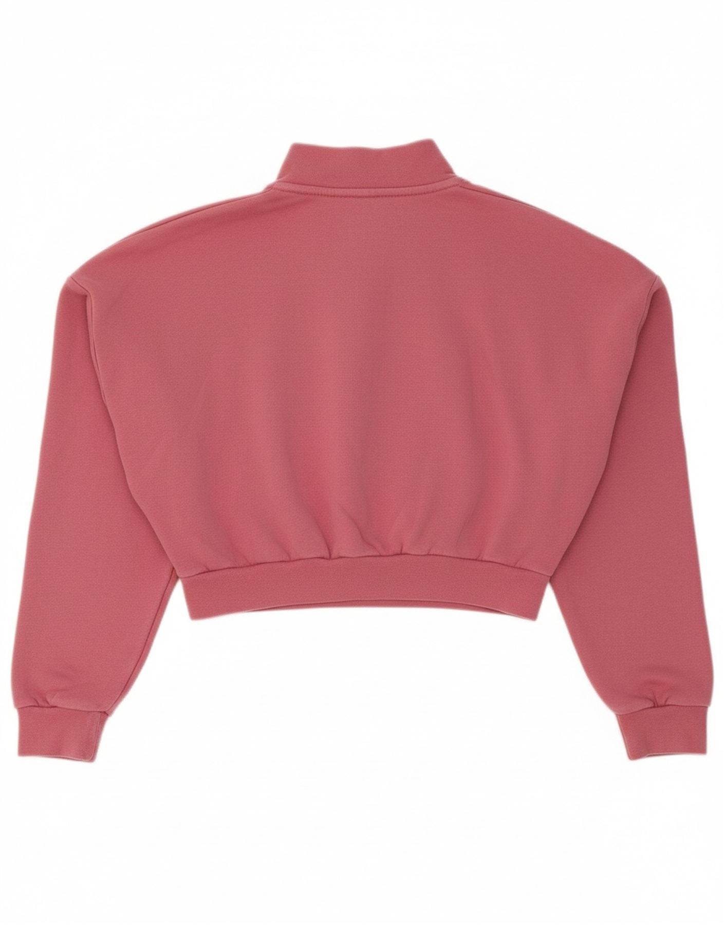 NIKE Womens Oversized Crop Zip Neck Sweatshirt Jumper UK 6 XS Pink Cotton