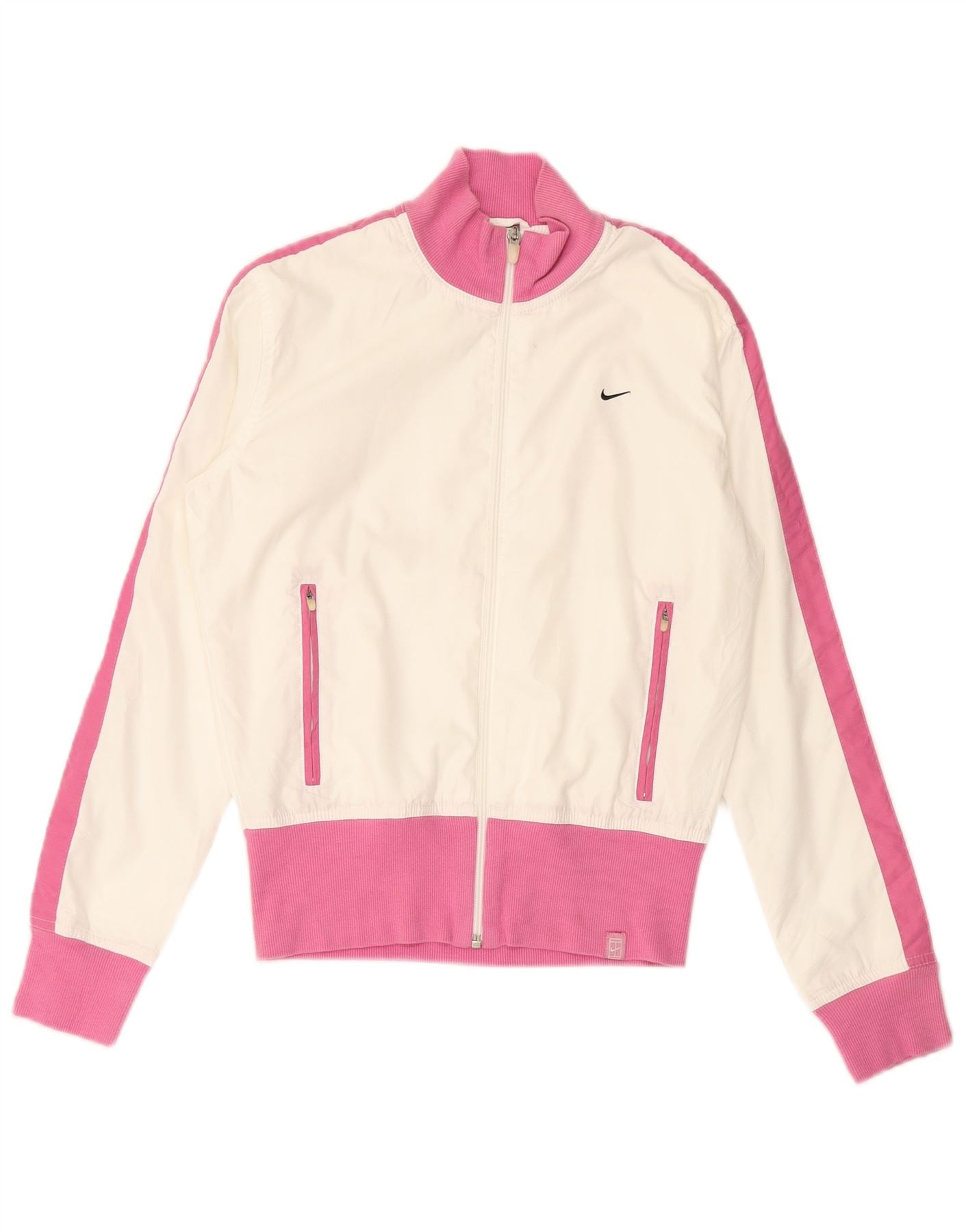 NIKE Womens Oversized Tracksuit Top Jacket UK 8/10 Small White Colourblock