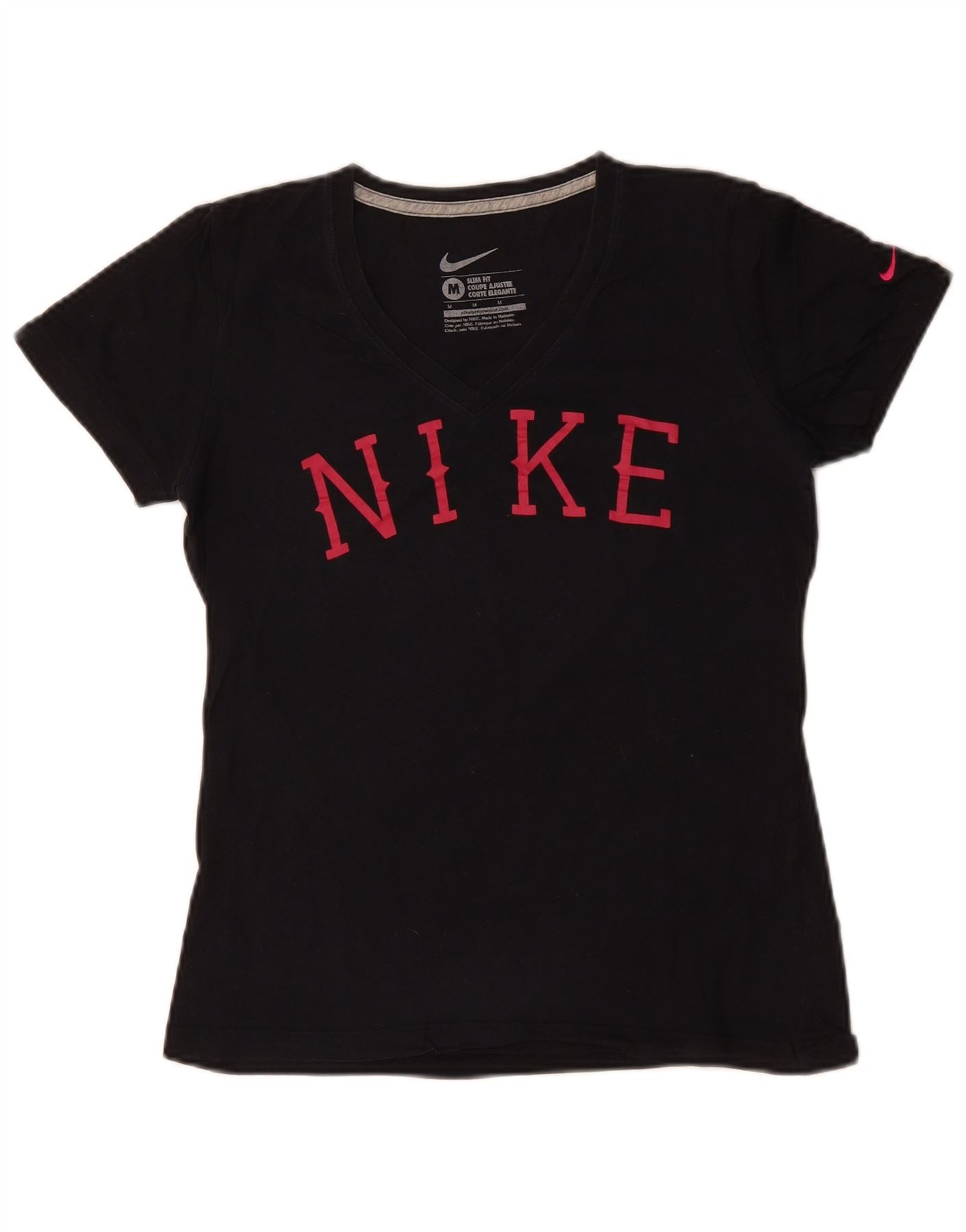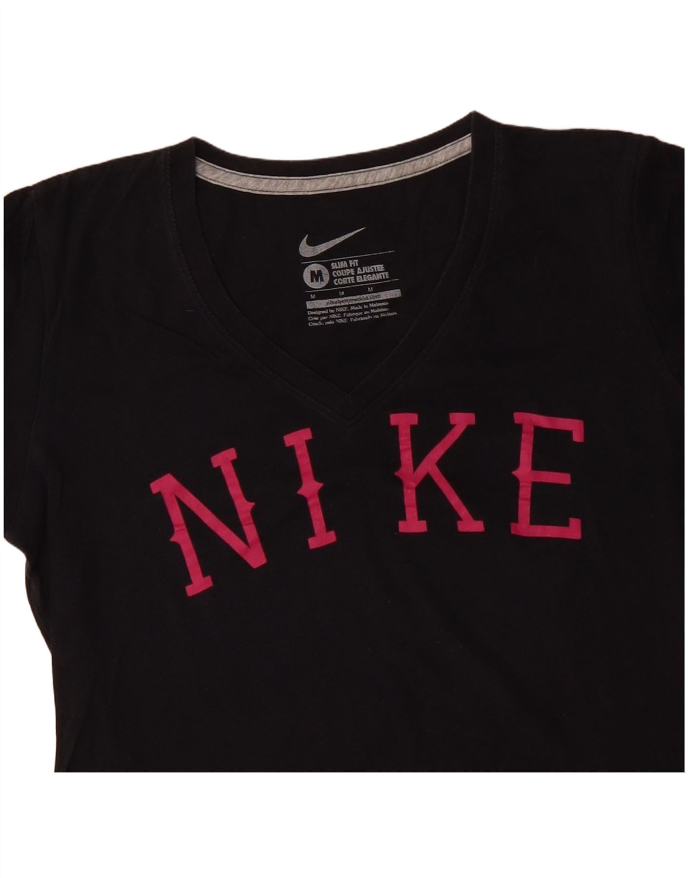 NIKE T-shirt coupe slim pour femme en coton noir moyen UK 12