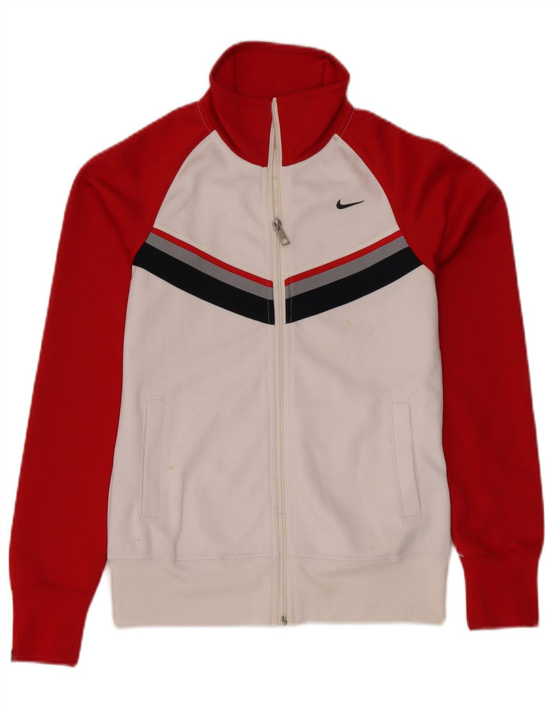 NIKE Womens Tracksuit Top Jacket UK 10 Small White Colourblock Polyester