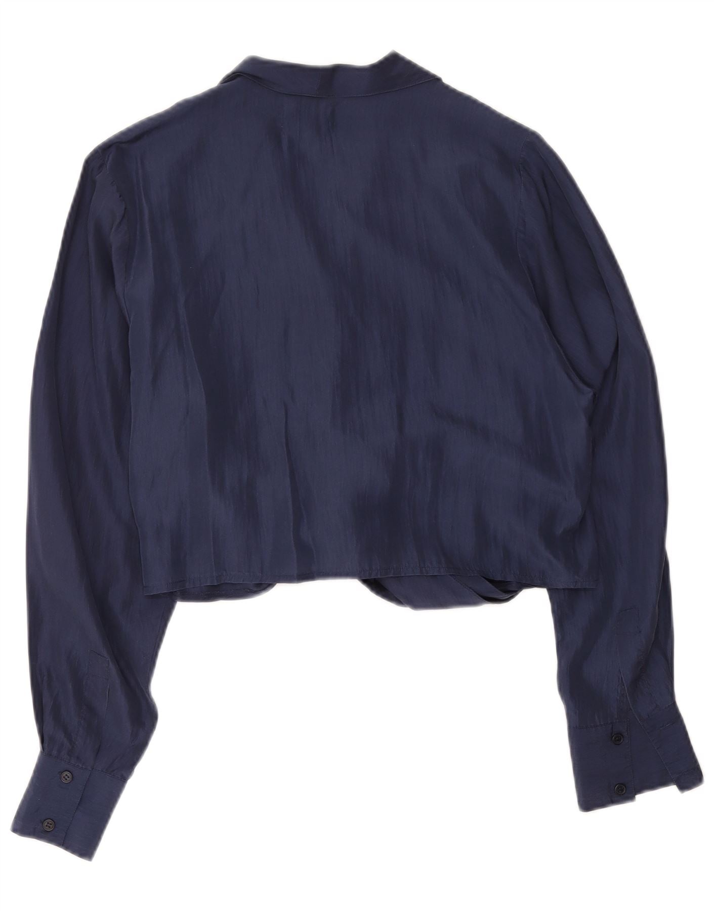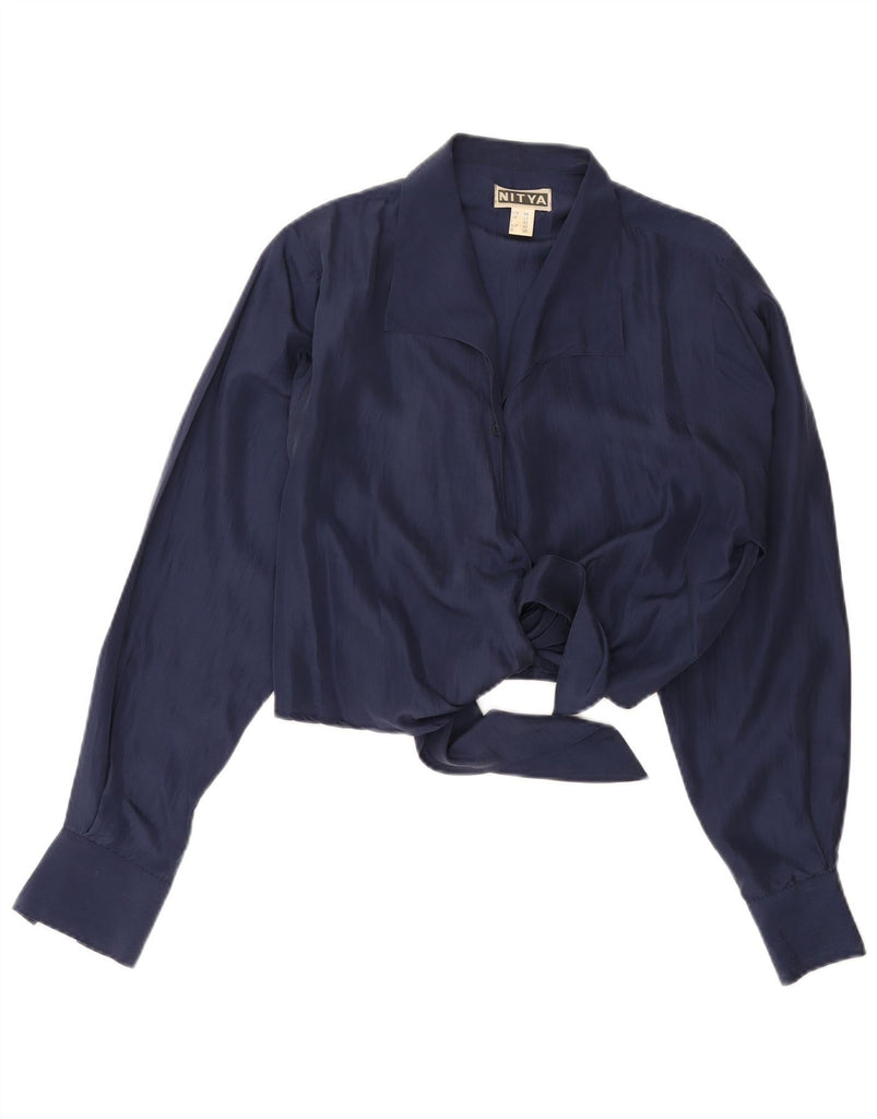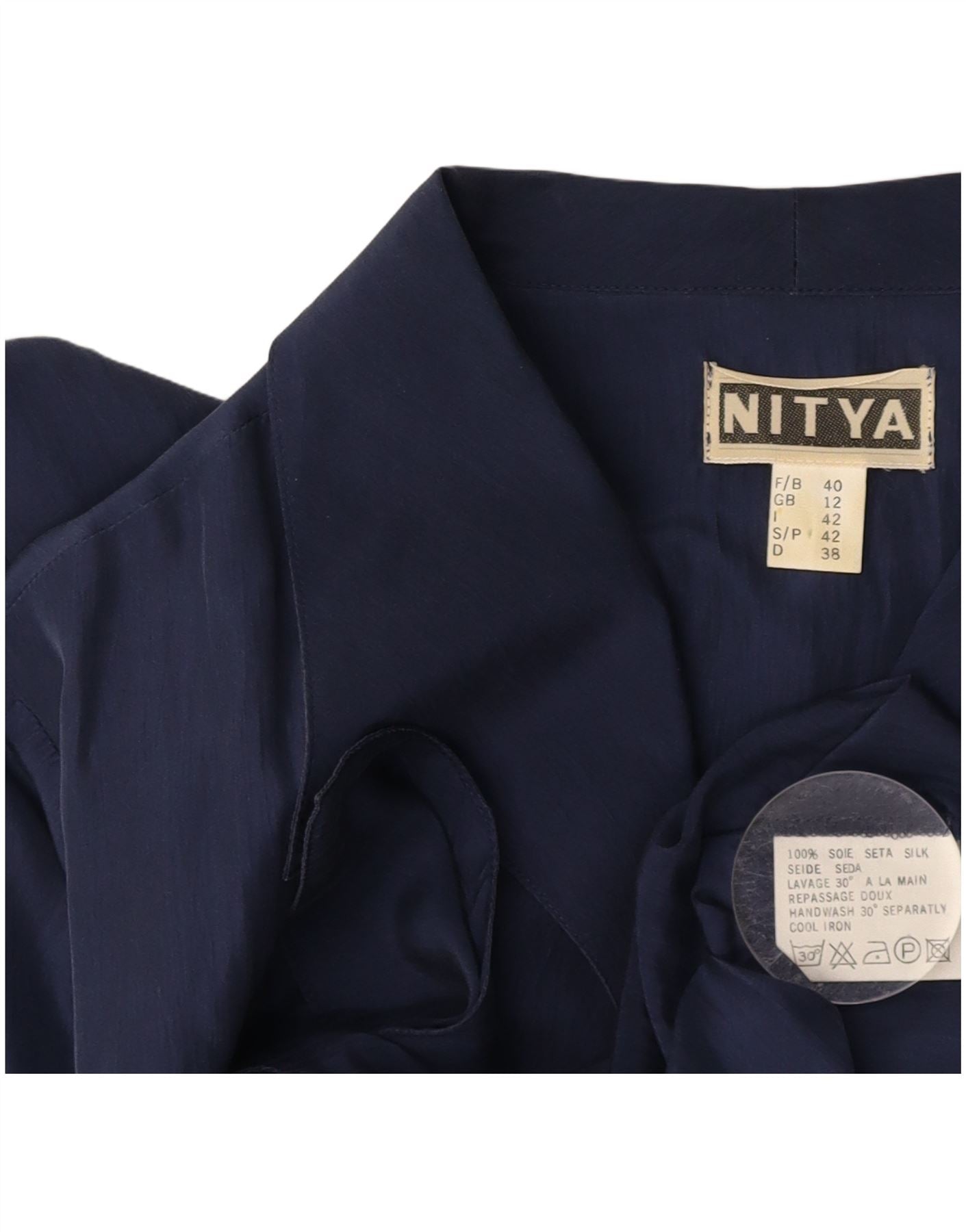 NITYA Chemisier court pour femme UK 12 en soie bleu marine moyen