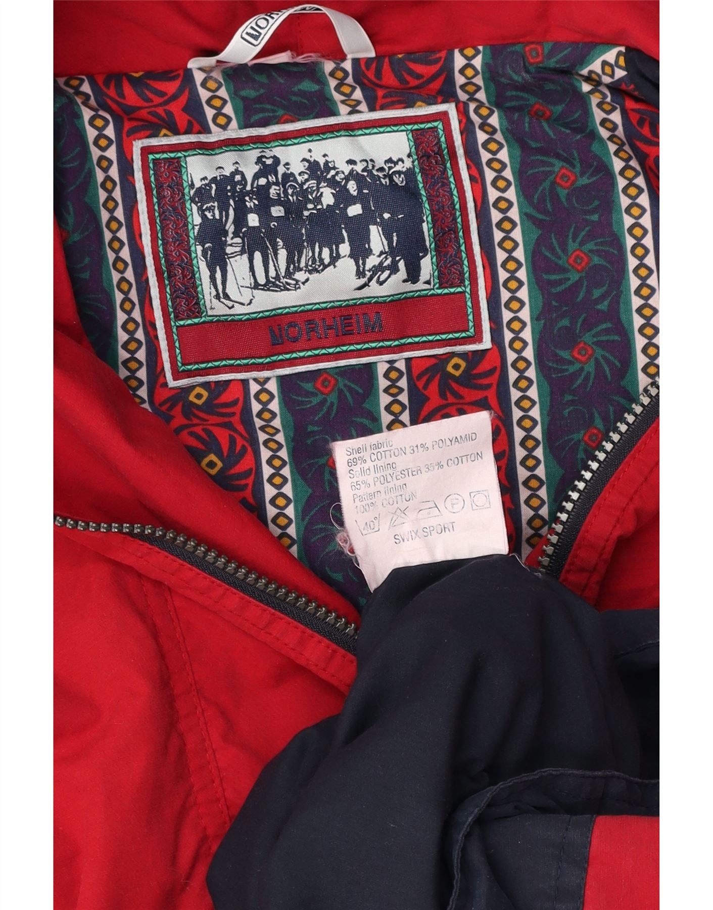 NORHEIM Veste Anorak à capuche pour homme UK 40 Large Rouge Colourblock Coton