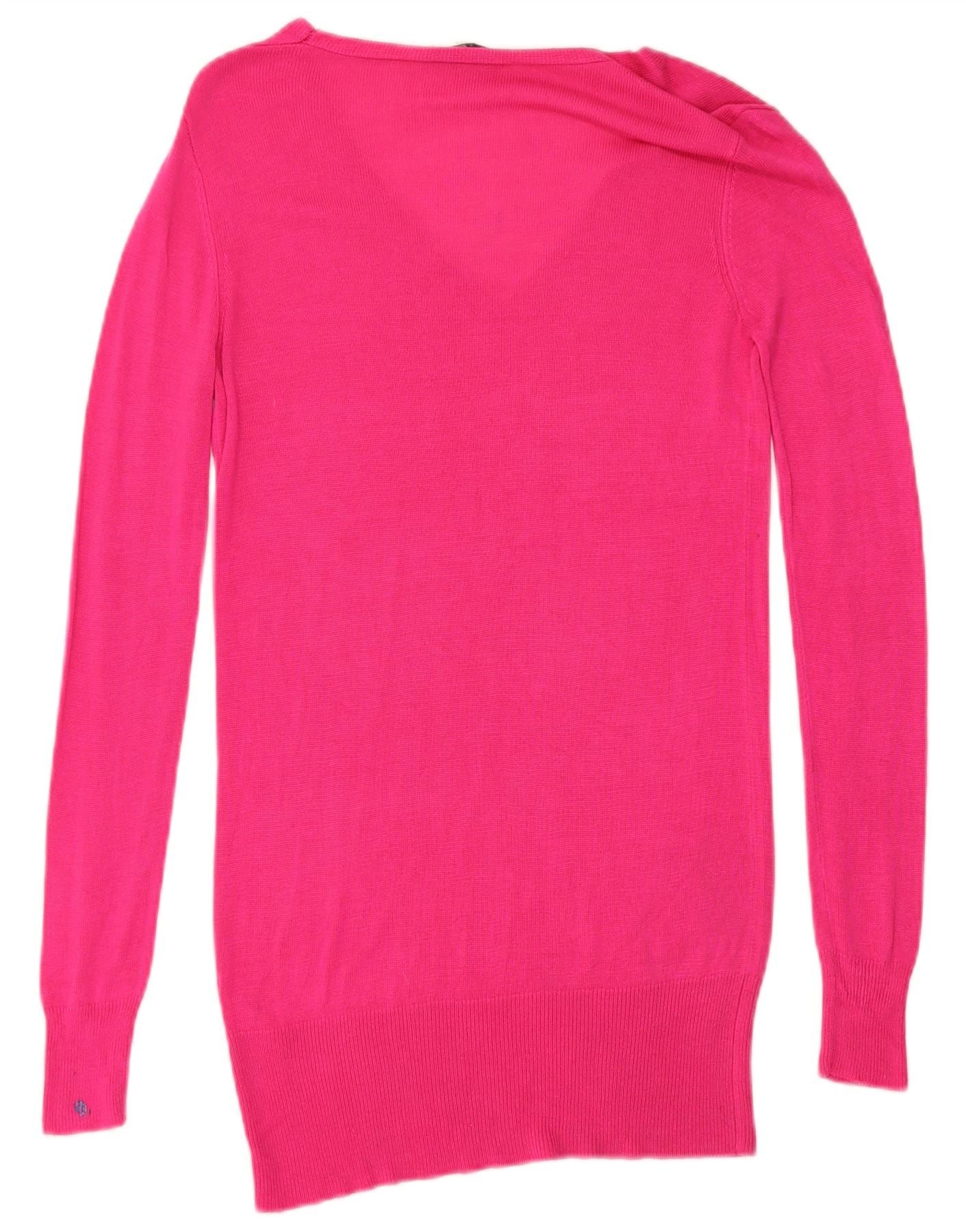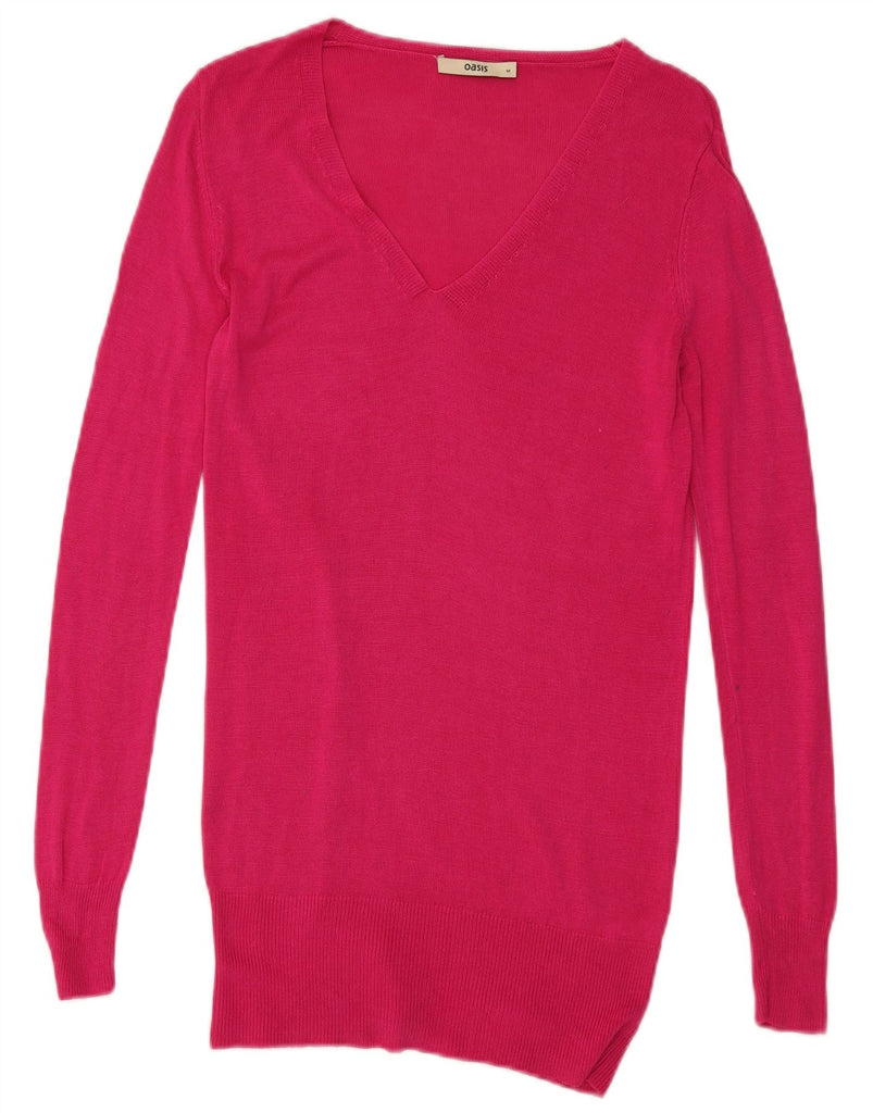 OASIS Womens Longline V-Neck Jumper Sweater UK 12 Medium Pink Viscose