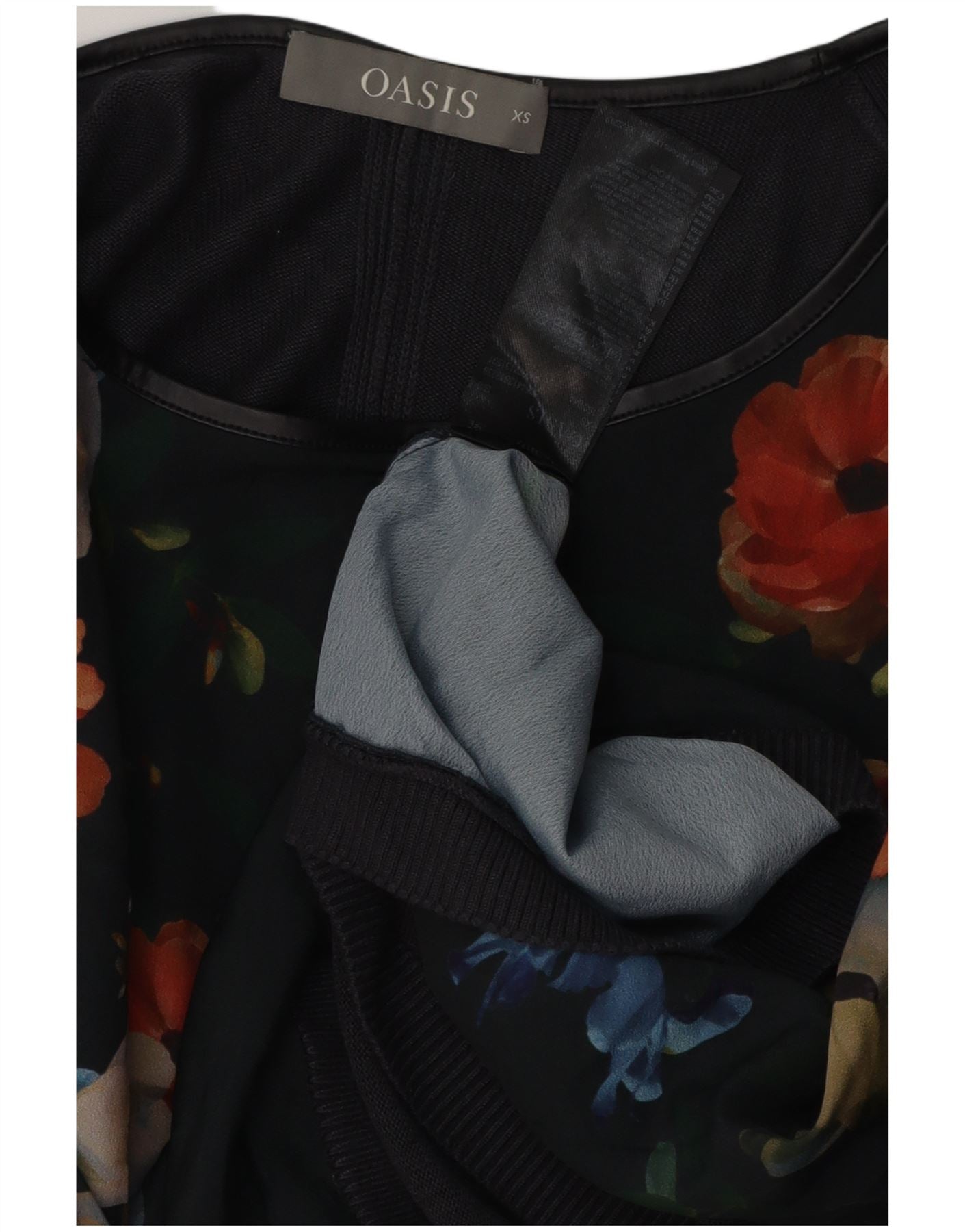 OASIS Womens Oversized Long Sleeve Blouse Top UK 6 XS Navy Blue Floral