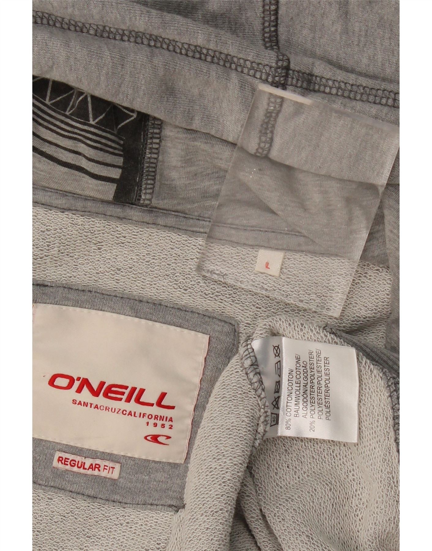 O'NEILL Mens Regular Fit Graphic Zip Hoodie Sweater Large Grey Cotton