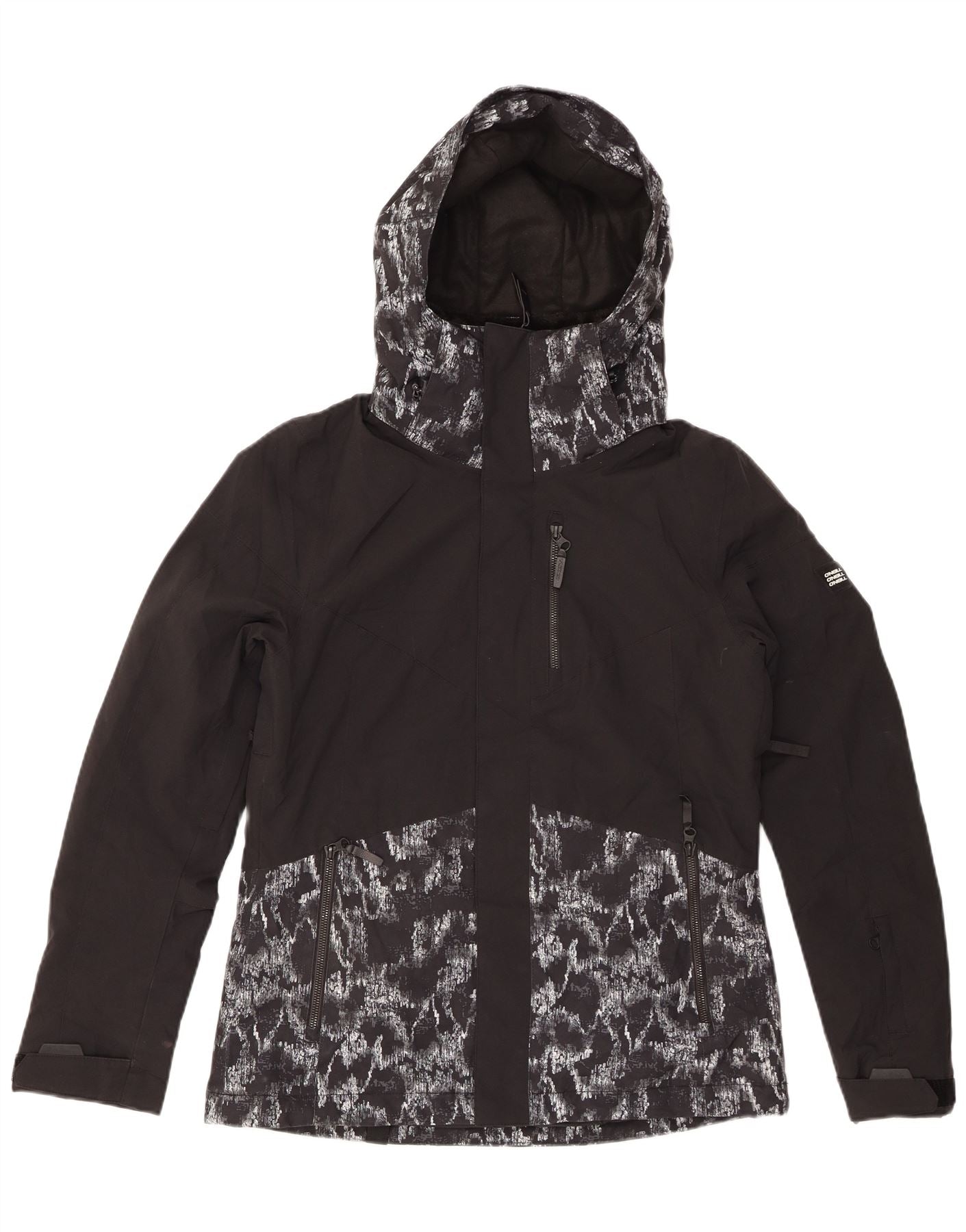 O'NEILL Veste de pluie à capuche à motif abstrait pour femme UK 14 Noir moyen