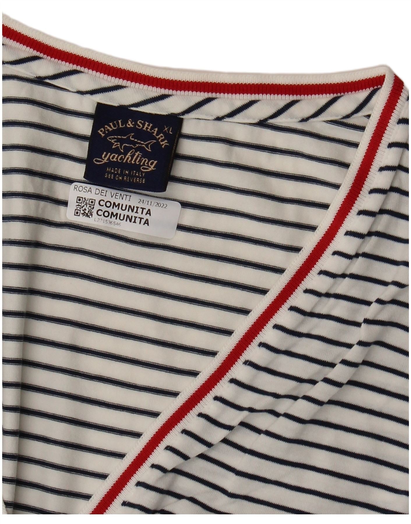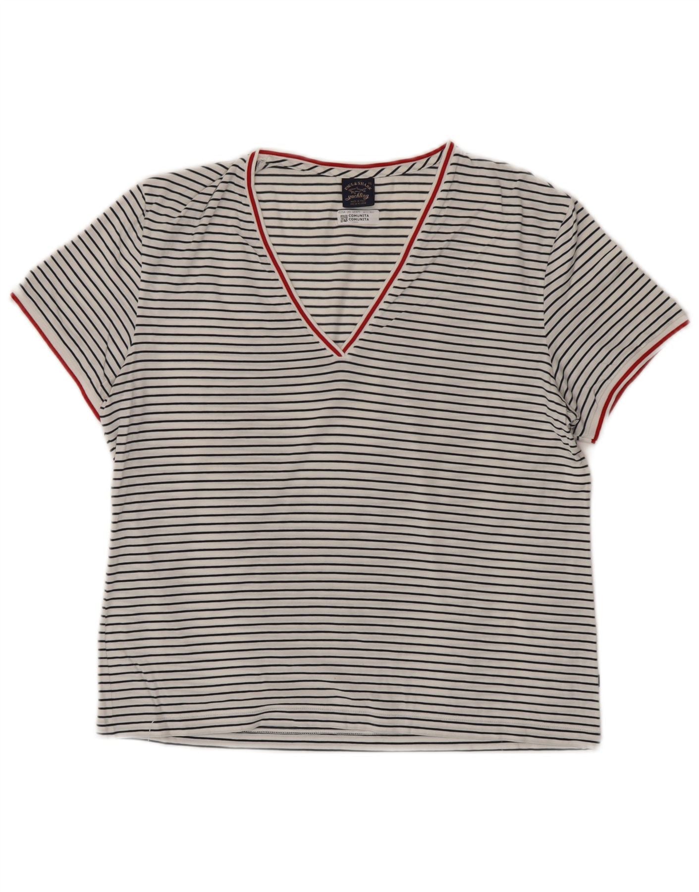 PAUL & SHARK T-Shirt Femme Top UK 18 XL Blanc Rayé Coton