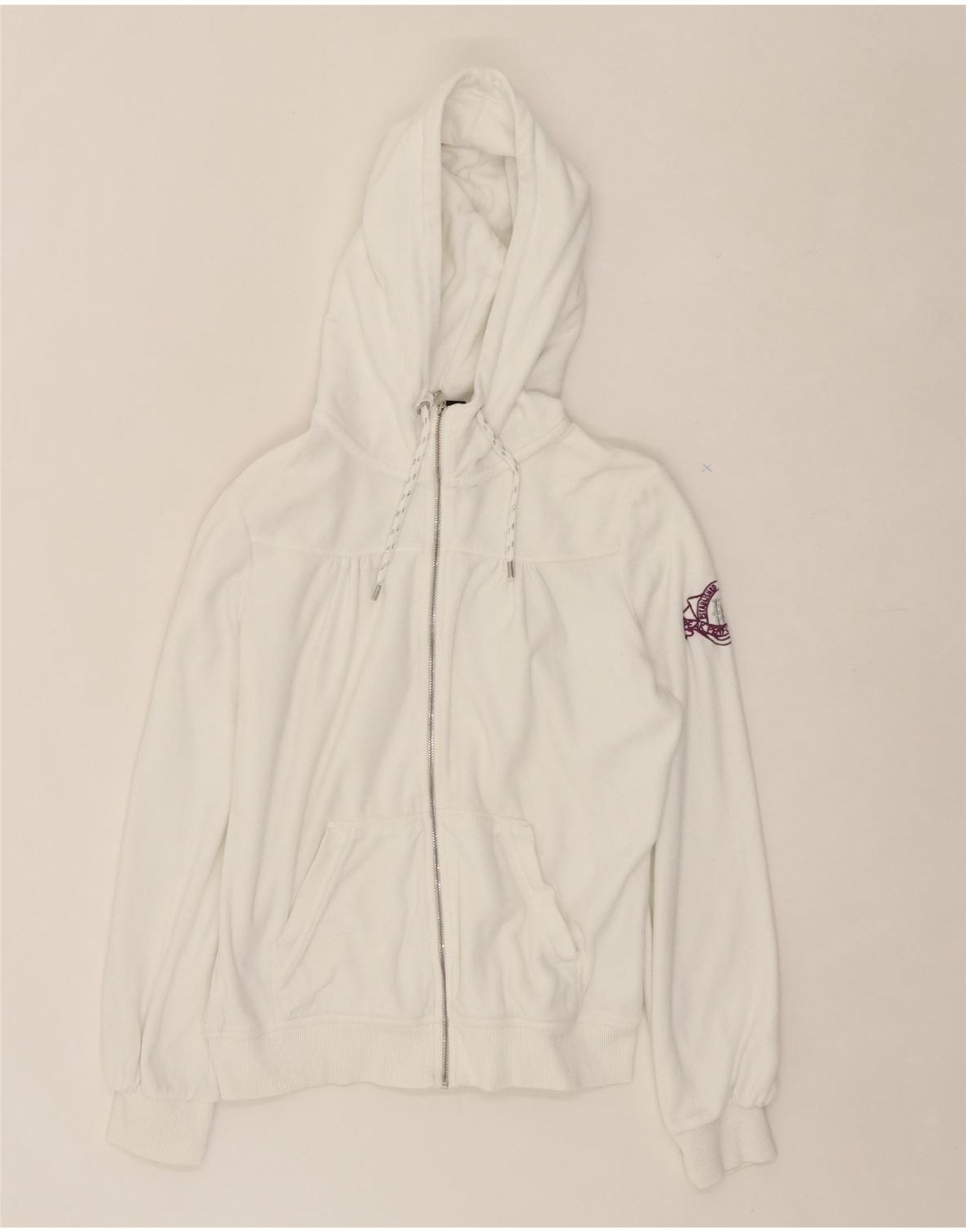 PEAK PERFORMANCE Womens Zip Hoodie Sweater UK 14 Medium White Cotton