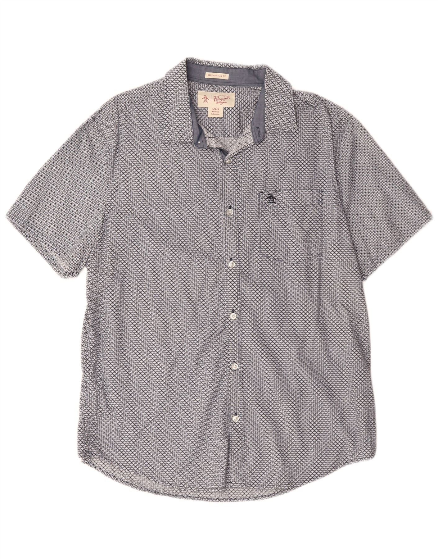 PENGUIN Chemise Heritage Slim Fit à Manches Courtes Homme Bleu Géométrique Grand