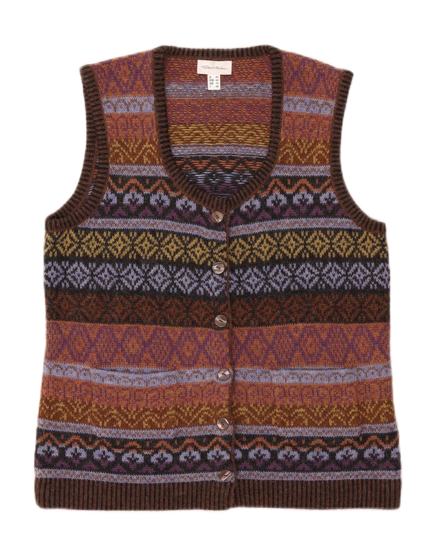 PETER HAHN Cardigan sans manches pour femme UK 16 Large Marron Fair Isle