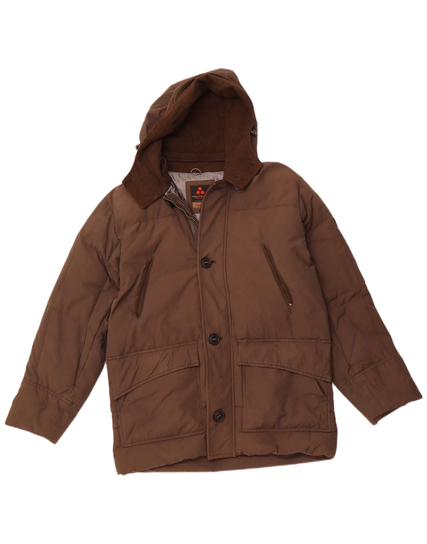 PEUTEREY Veste matelassée à capuche pour homme UK 38 en coton marron moyen
