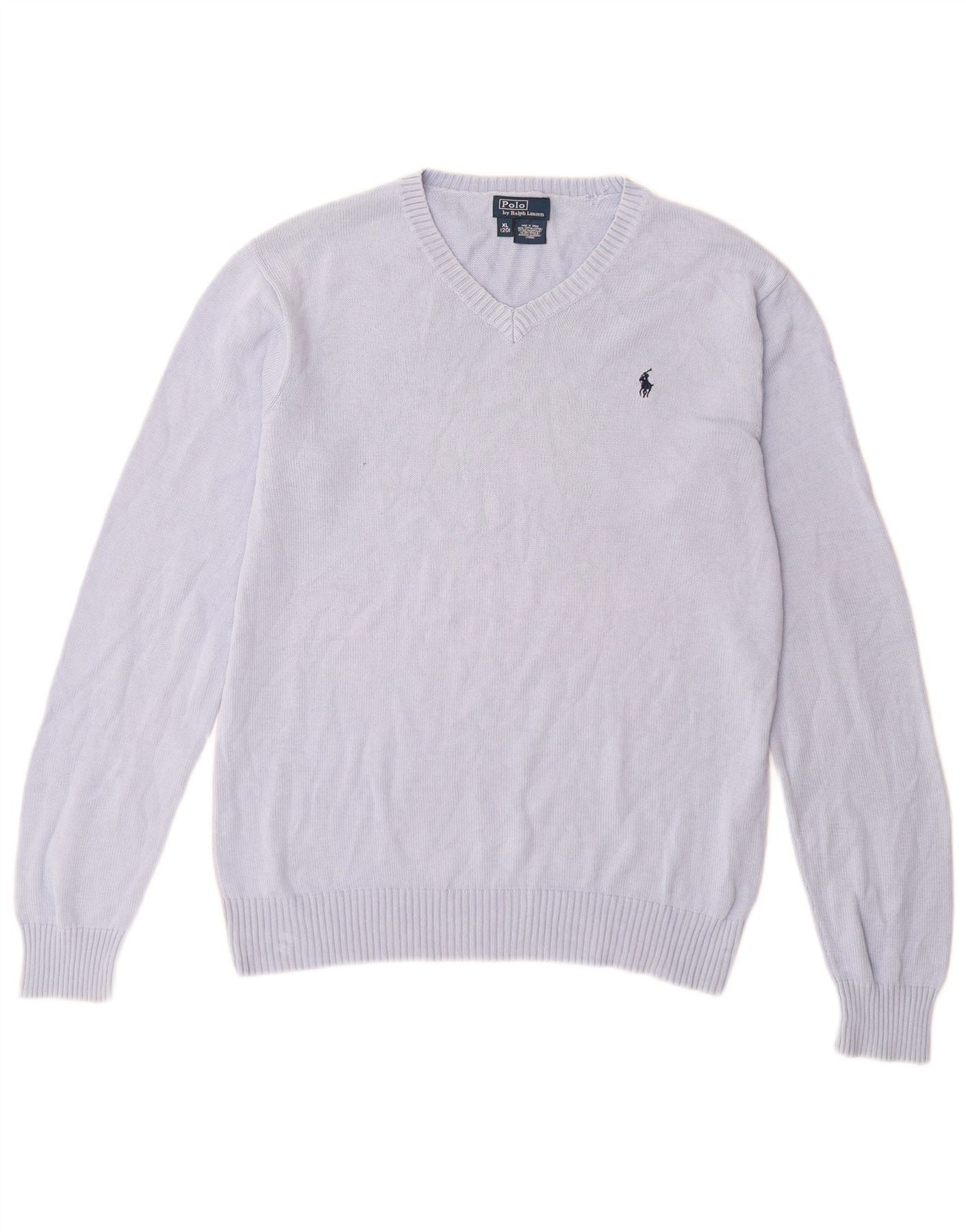 POLO RALPH LAUREN Pull col V pour garçon 13-14 ans XL Bleu Coton