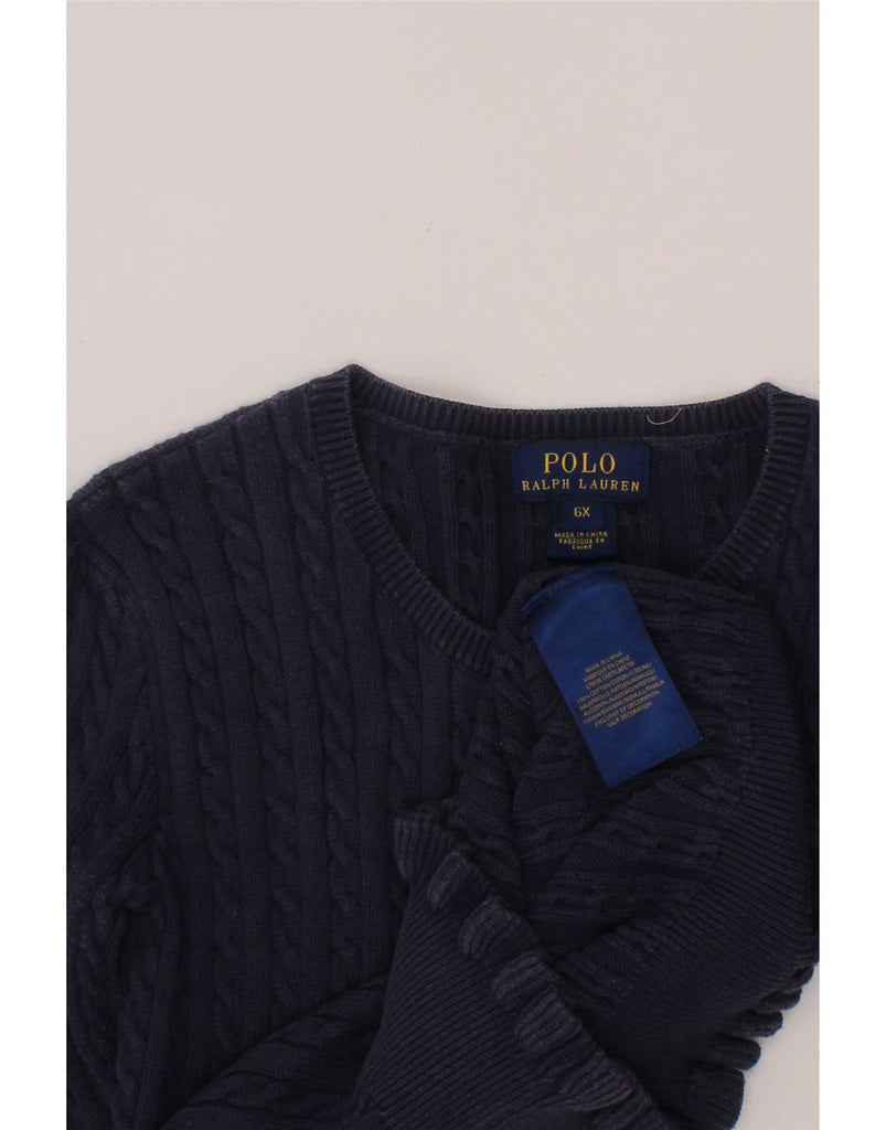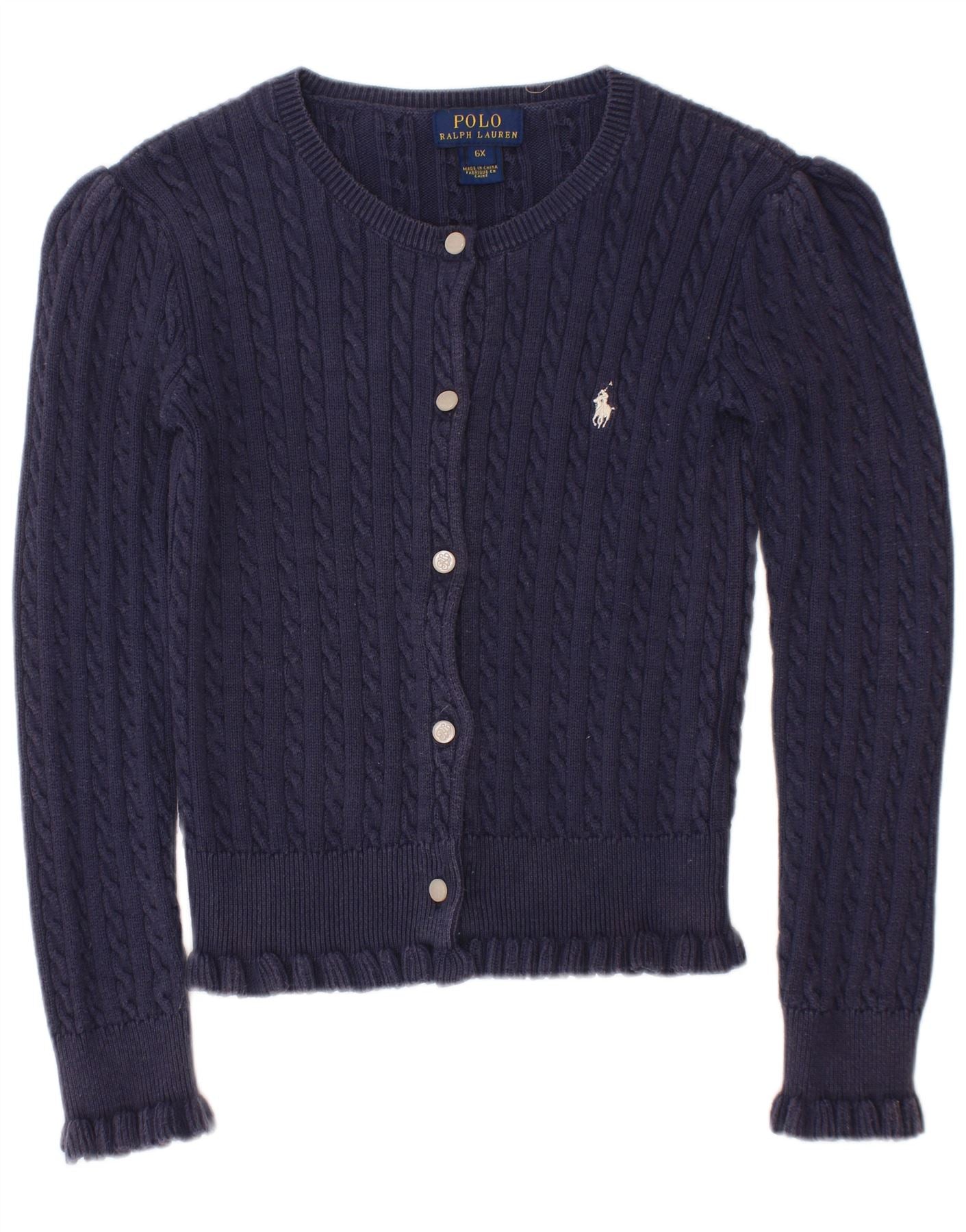 POLO RALPH LAUREN Pull Cardigan Fille 6-7 ans Bleu Marine Coton