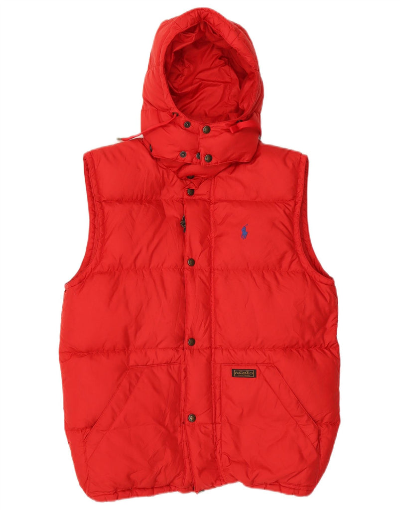POLO RALPH LAUREN Mens Hooded Padded Gilet UK 38 Medium Red Polyester