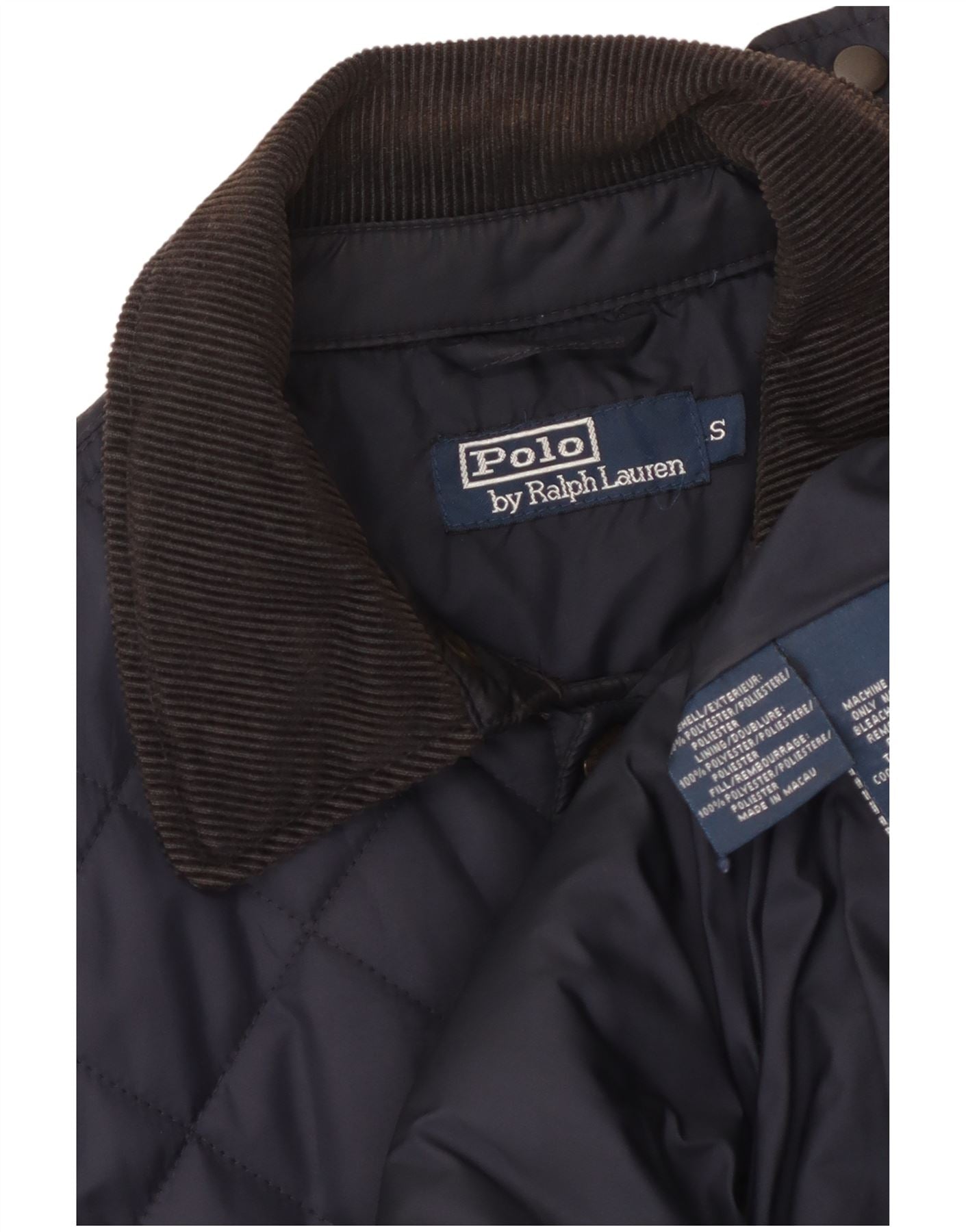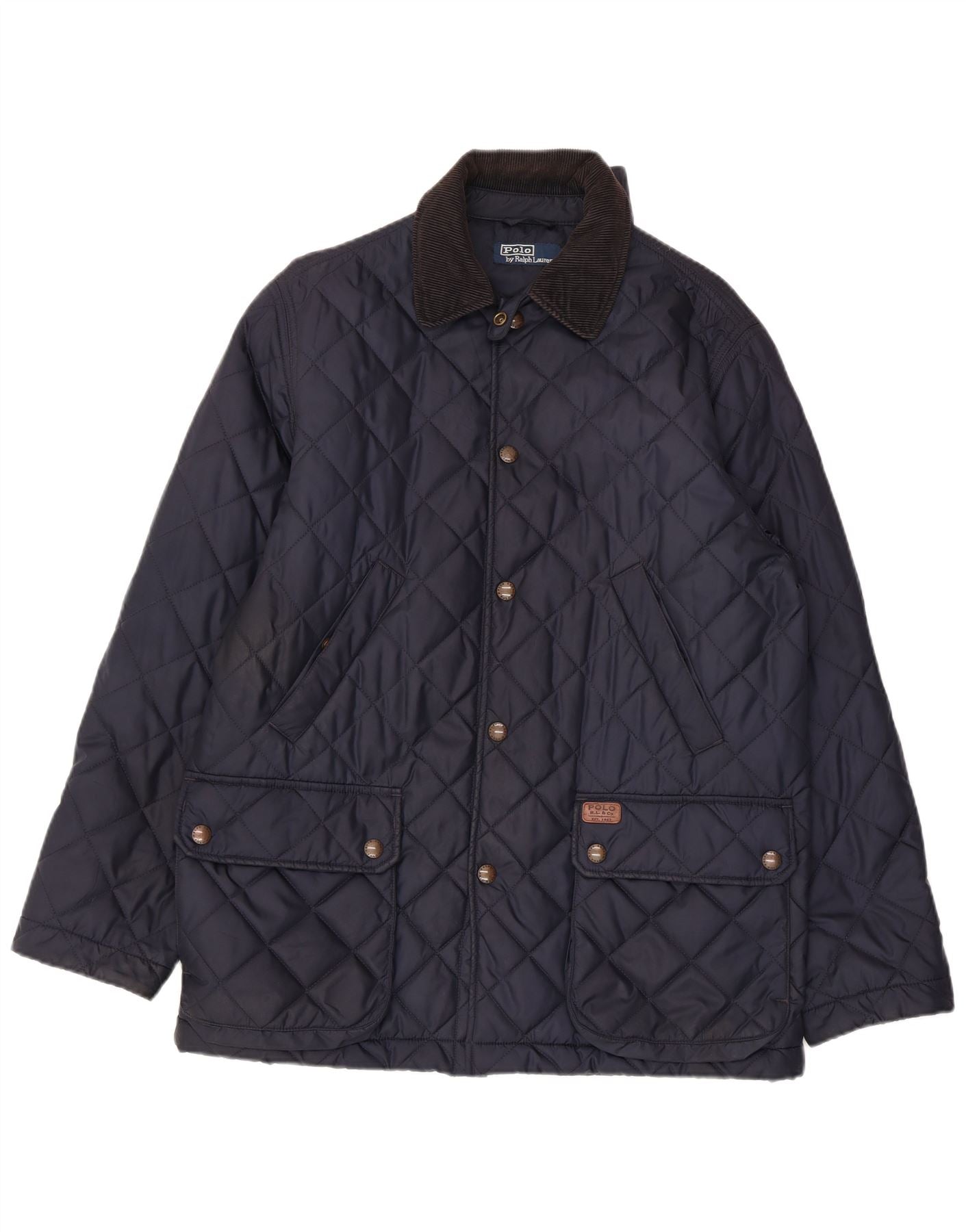 POLO RALPH LAUREN Mens Quilted Jacket UK 36 Small Navy Blue Polyester