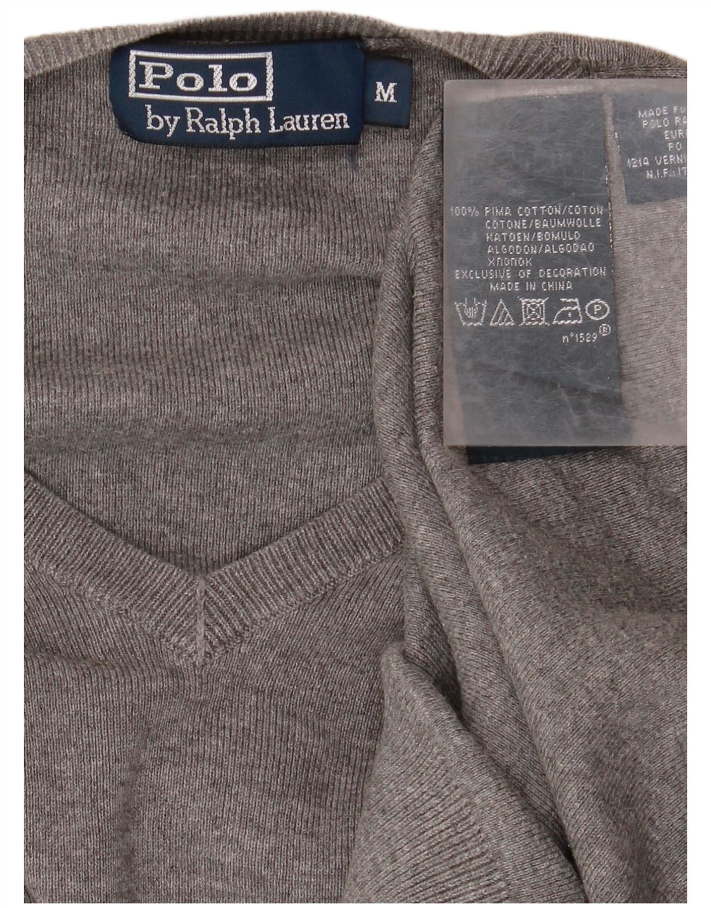 POLO RALPH LAUREN Pull Col V Homme Gris Moyen Coton