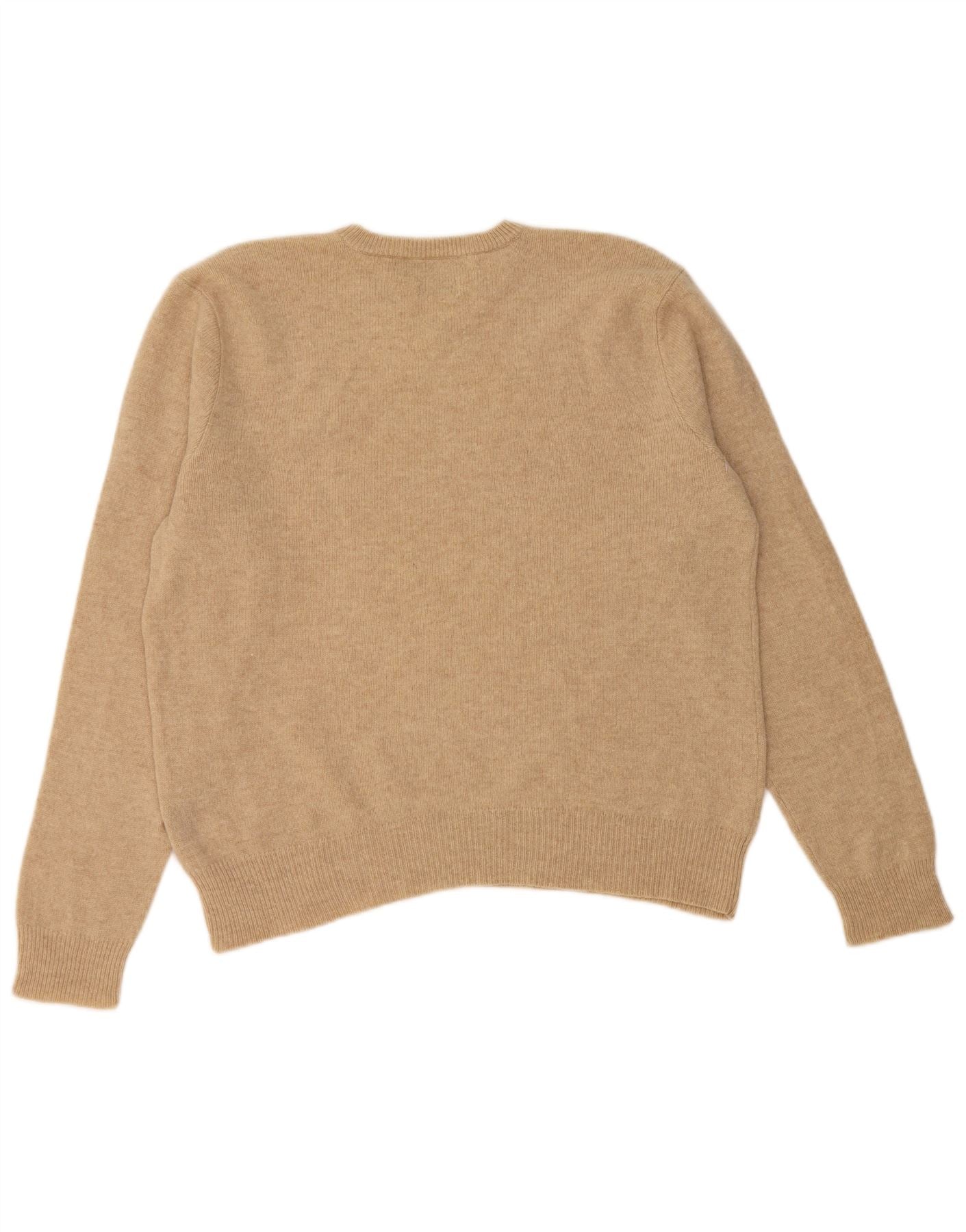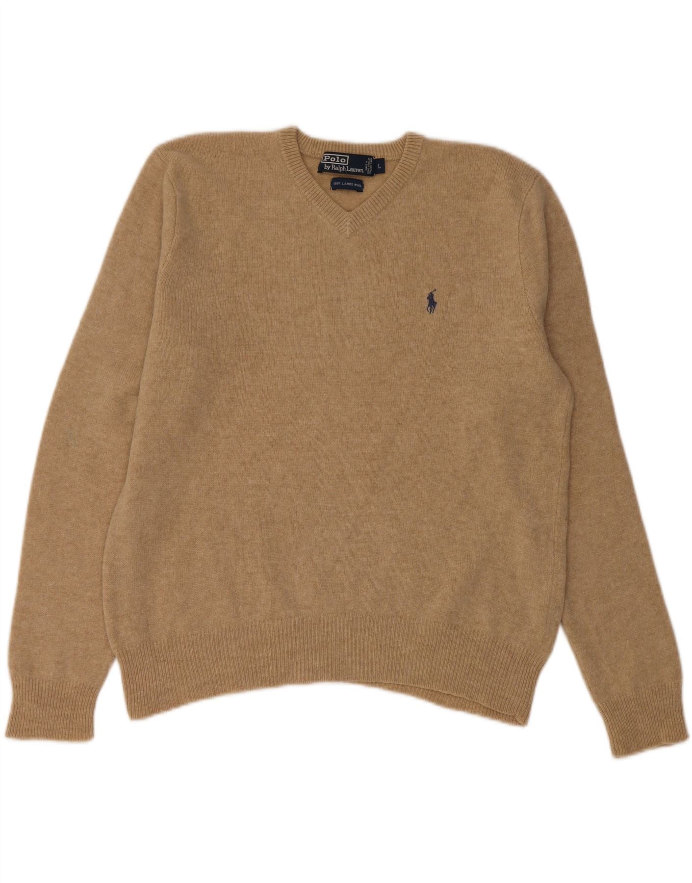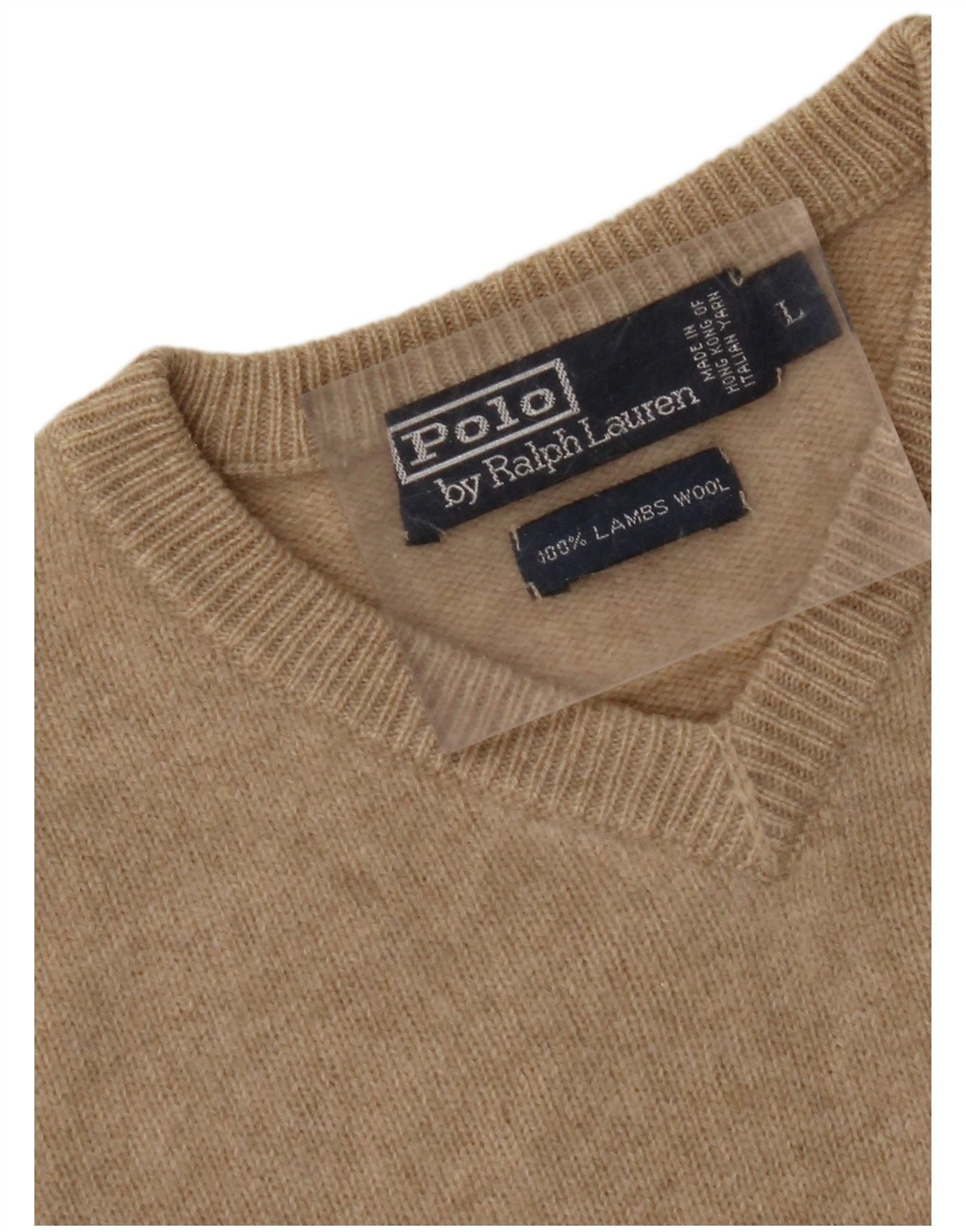 POLO RALPH LAUREN Pull col en V pour femme UK 16 Large laine d'agneau beige