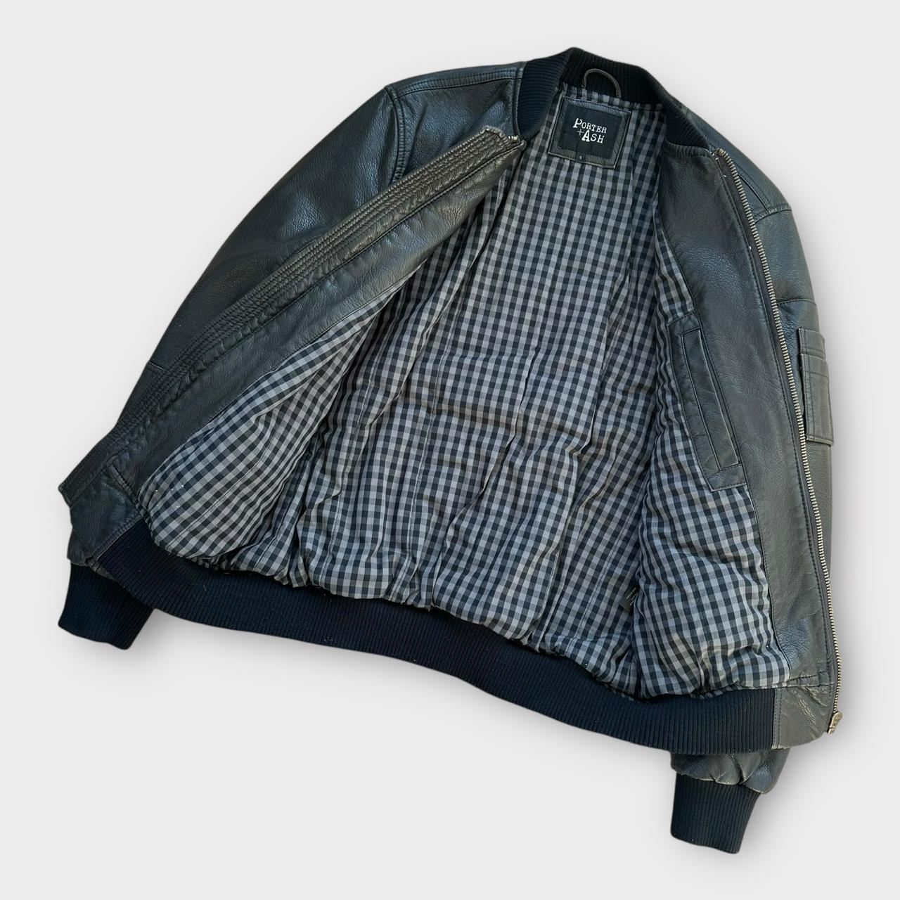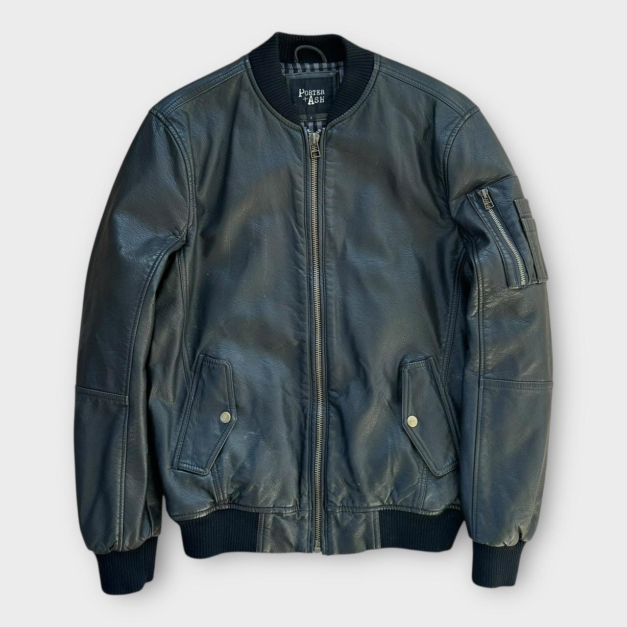 Veste zippée en cuir style bomber Porter and Ash noire avec doublure légèrement matelassée à motifs