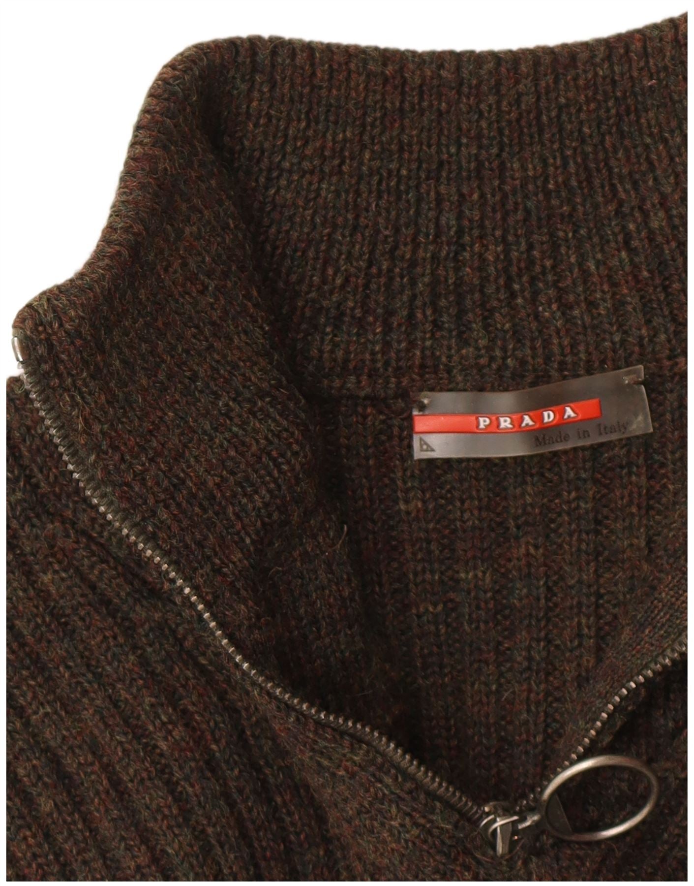 PRADA Pull col zippé pour femme IT 48 XL Laine vierge marron
