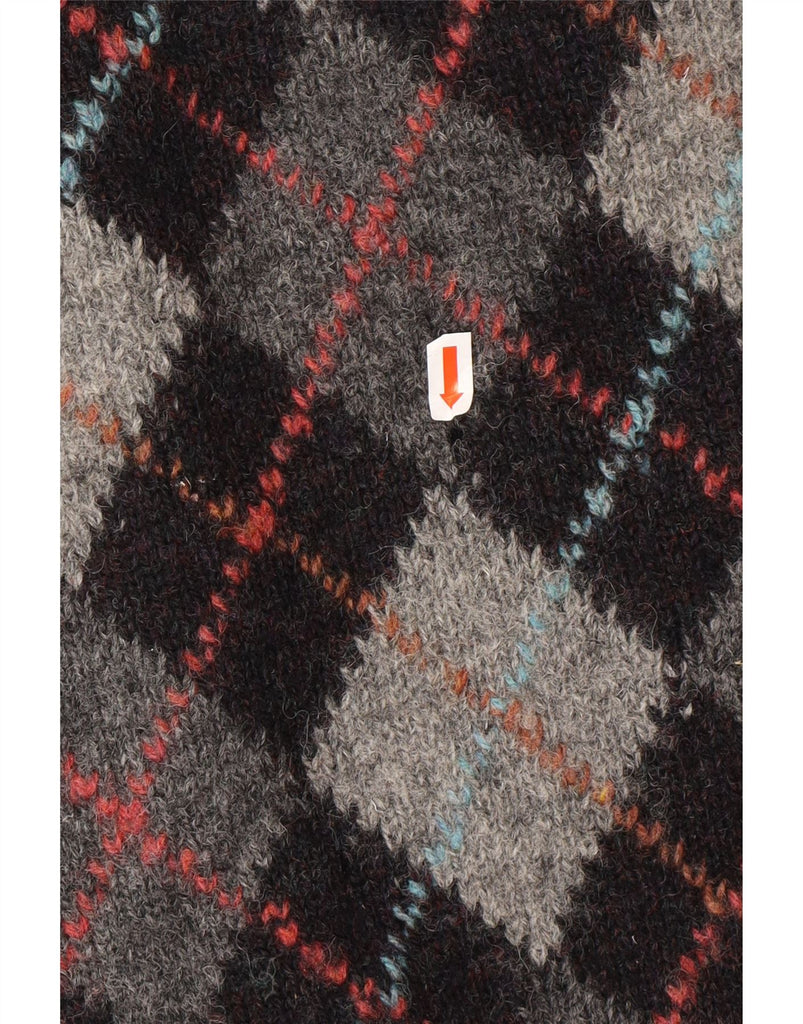 PRINGLE Mens Crew Neck Jumper Sweater UK 42 Large Grey Argyle/Diamond Wool