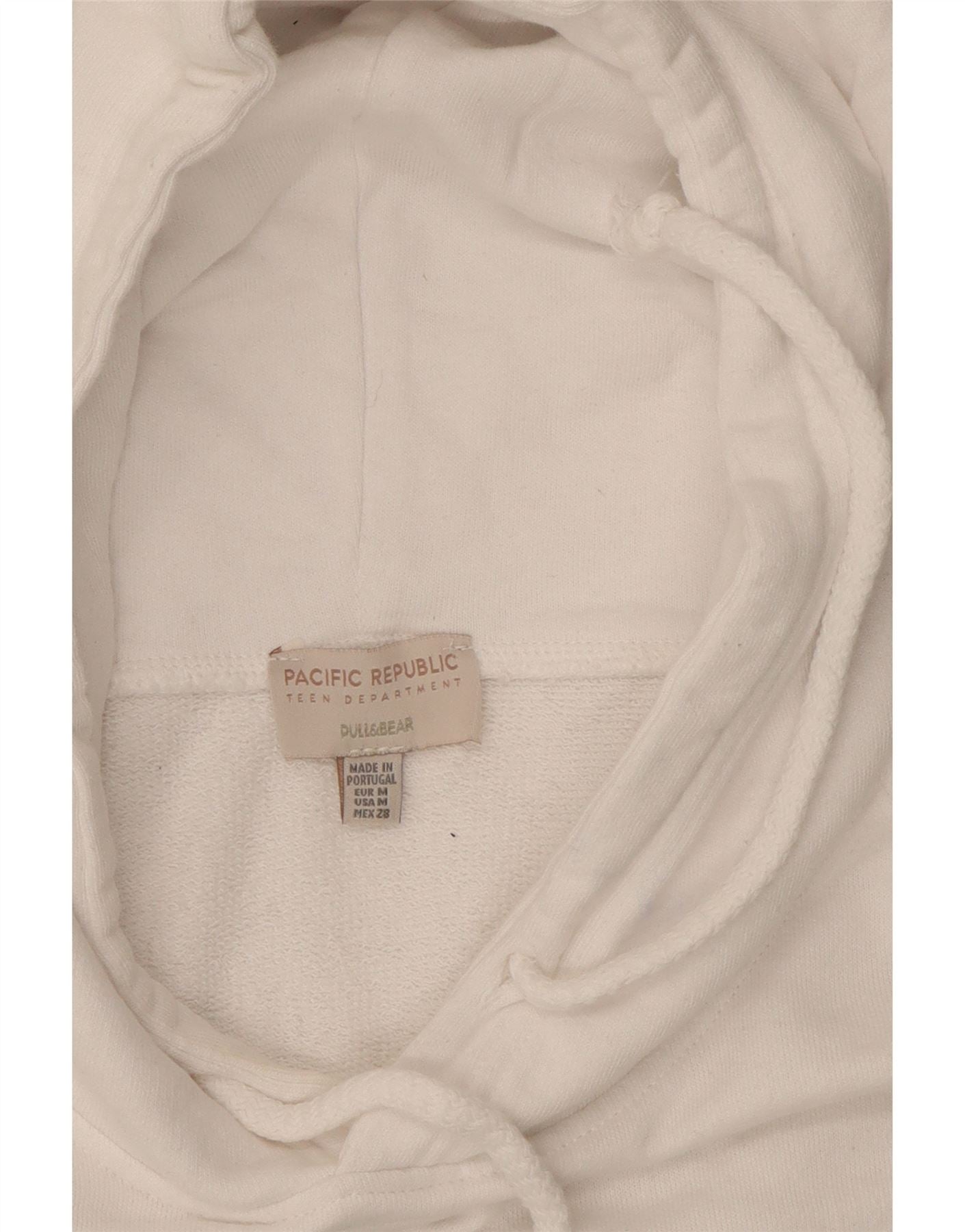 PULL & BEAR Mens Loose Fit Graphic Hoodie Jumper Medium White Cotton