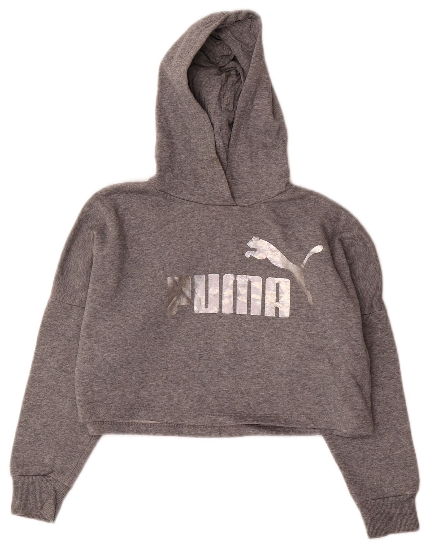 PUMA Pull à capuche court graphique pour fille 9-10 ans Gris Coton