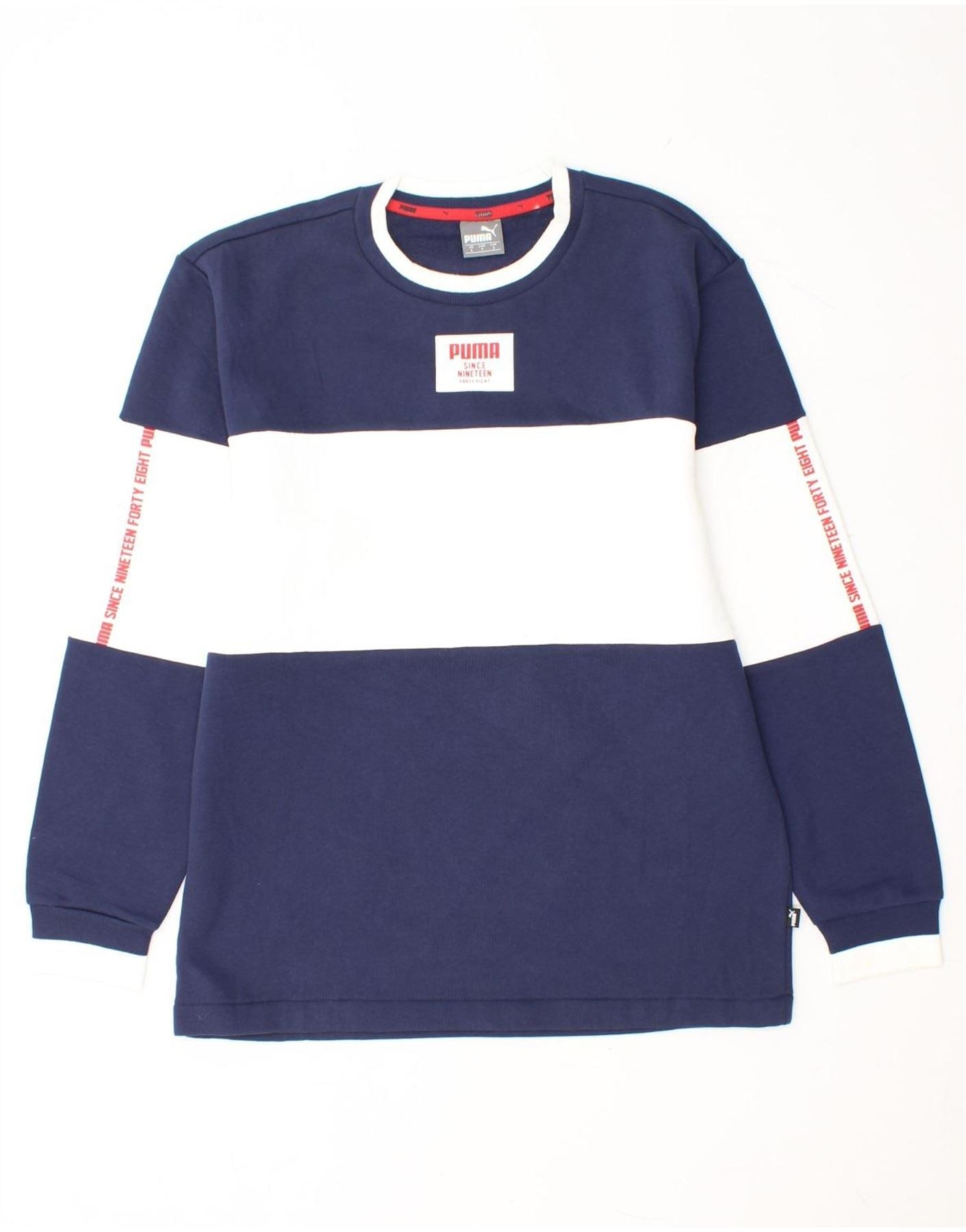 PUMA Sweat-shirt graphique pour hommes, petit, bleu marine, colour block