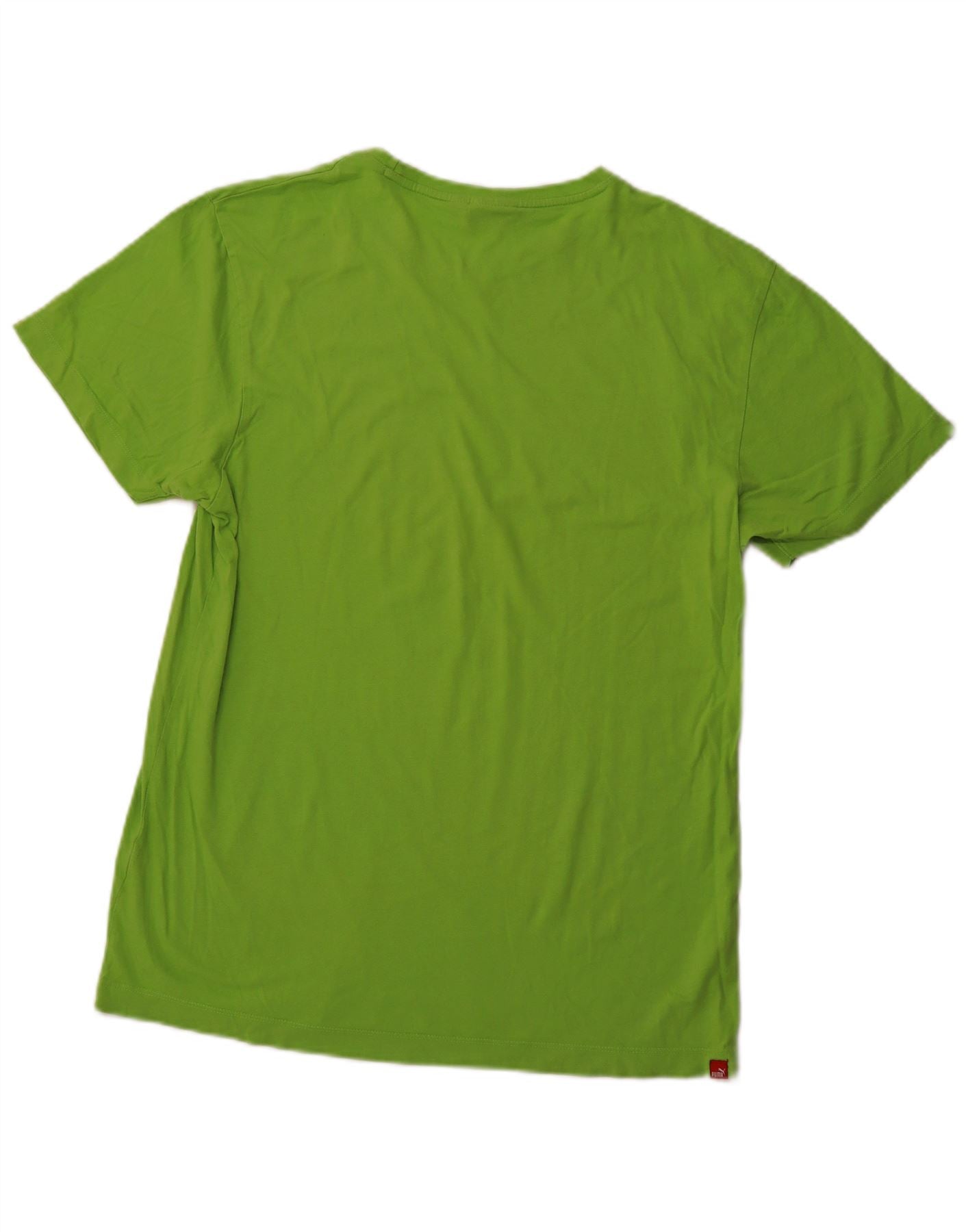 - Description de l'IA : Ce t-shirt graphique Puma pour hommes est fabriqué à partir de tissu jersey vert doux. Il présente un col rond classique et des manches courtes. Le devant affiche un logo Puma jaune audacieux. Sa coupe régulière assure confort et facilité de mouvement. Ce style de pull est idéal pour les vêtements de sport ou décontractés.