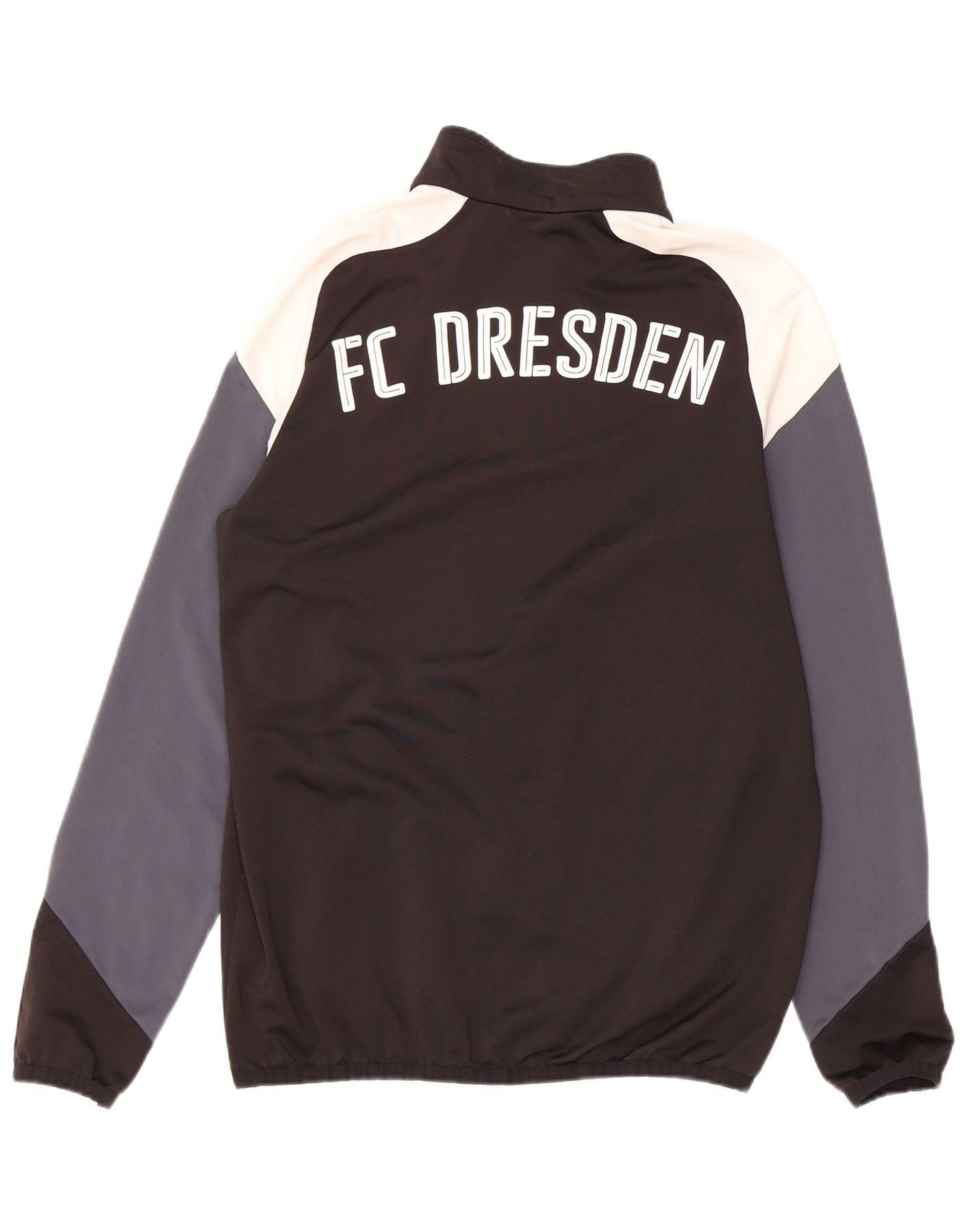 - Description de l'IA : Cette veste de survêtement Puma pour homme est fabriquée à 100 % en polyester pour une finition lisse et durable. Il présente un col haut et une fermeture éclair complète pour un port polyvalent. Le motif color block combine des panneaux noirs, gris et blancs pour un look dynamique. Les manches longues et la coupe régulière assurent confort et facilité de mouvement. Un logo graphique du FC Dresden orne le devant, avec le nom de l'équipe imprimé au dos. Cette veste comprend des poches pratiques et un logo Puma.