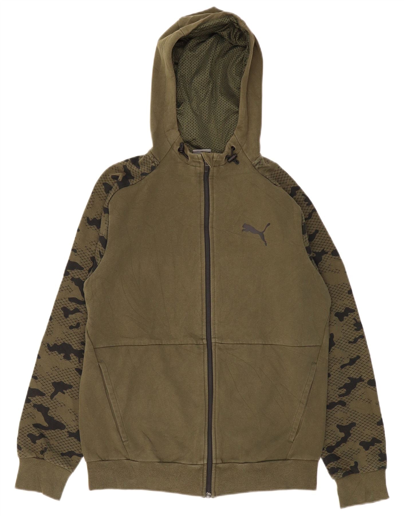 PUMA Sweat à capuche zippé pour homme, petit, kaki, camouflage