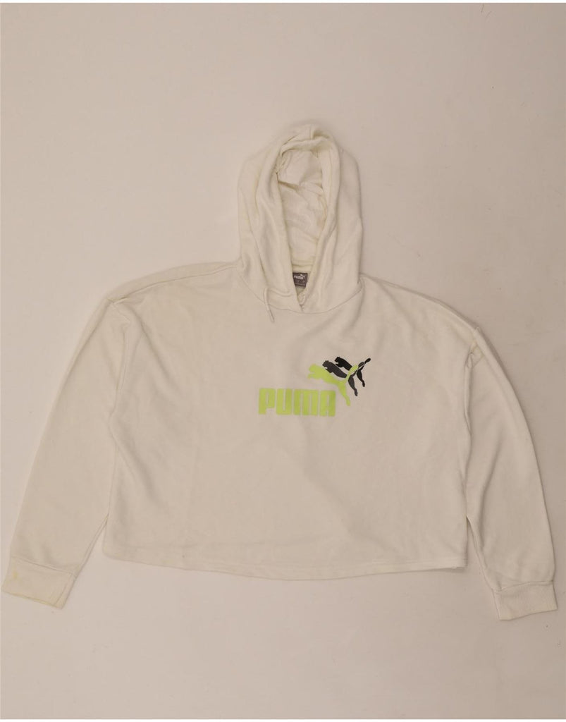 PUMA Pull à capuche surdimensionné graphique pour femme UK 16 Large Blanc cassé en coton