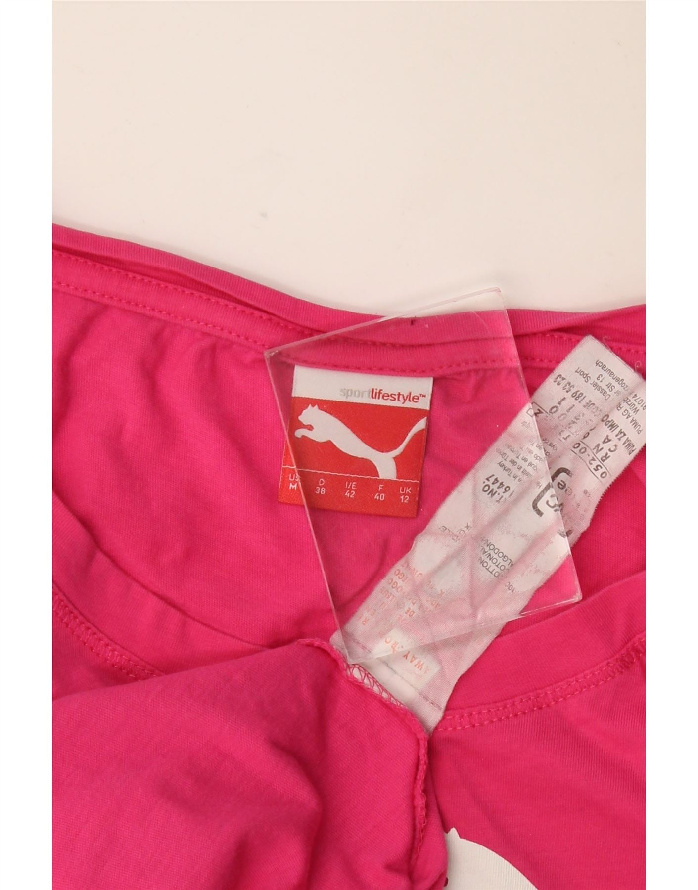 Puma Haut graphique pour femme à manches 3/4 UK 12 Rose moyen Coton