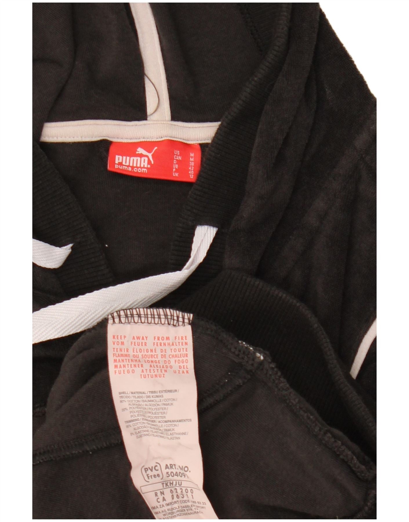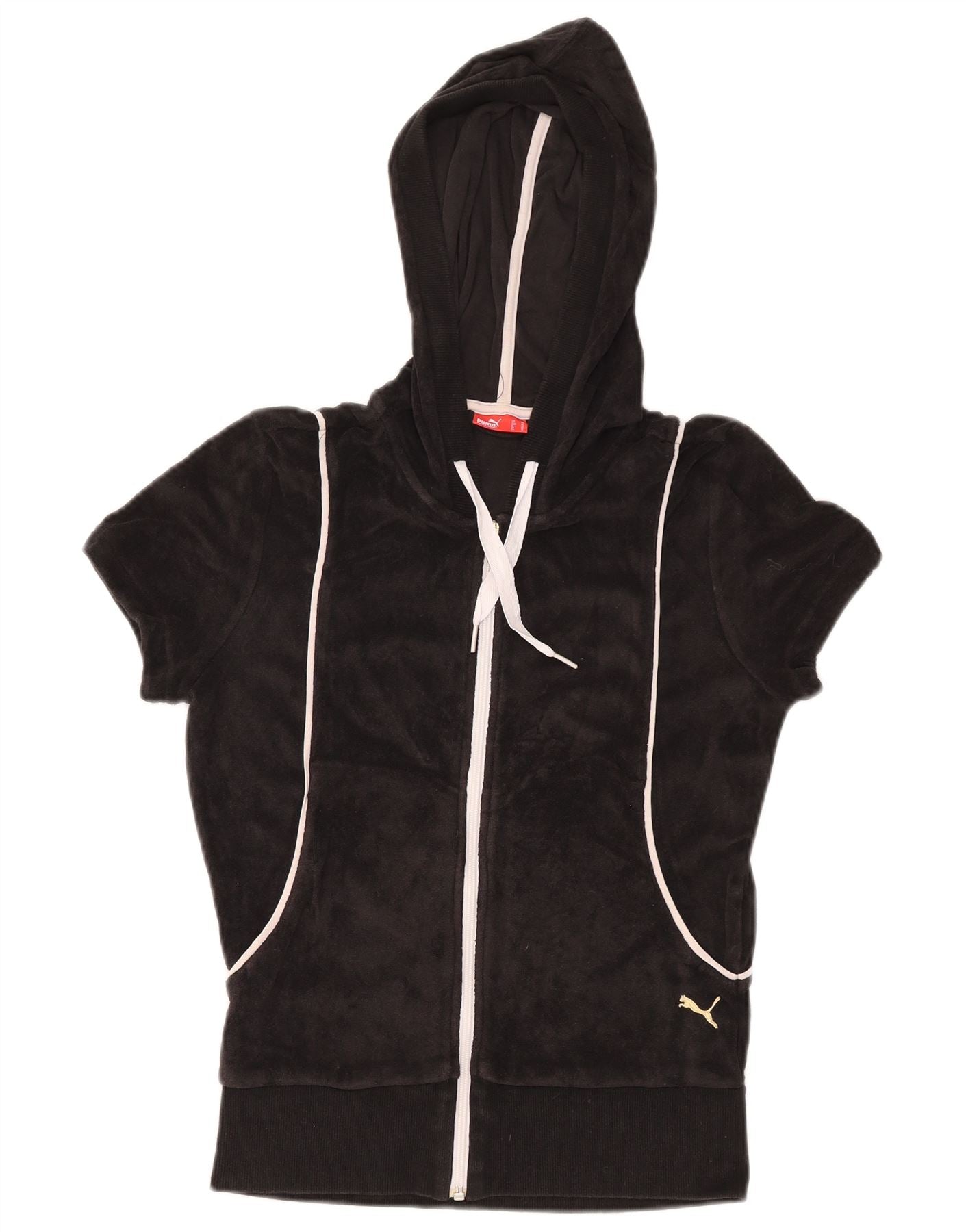 PUMA Pull à capuche zippé en velours à manches courtes pour femme UK 12 Noir moyen