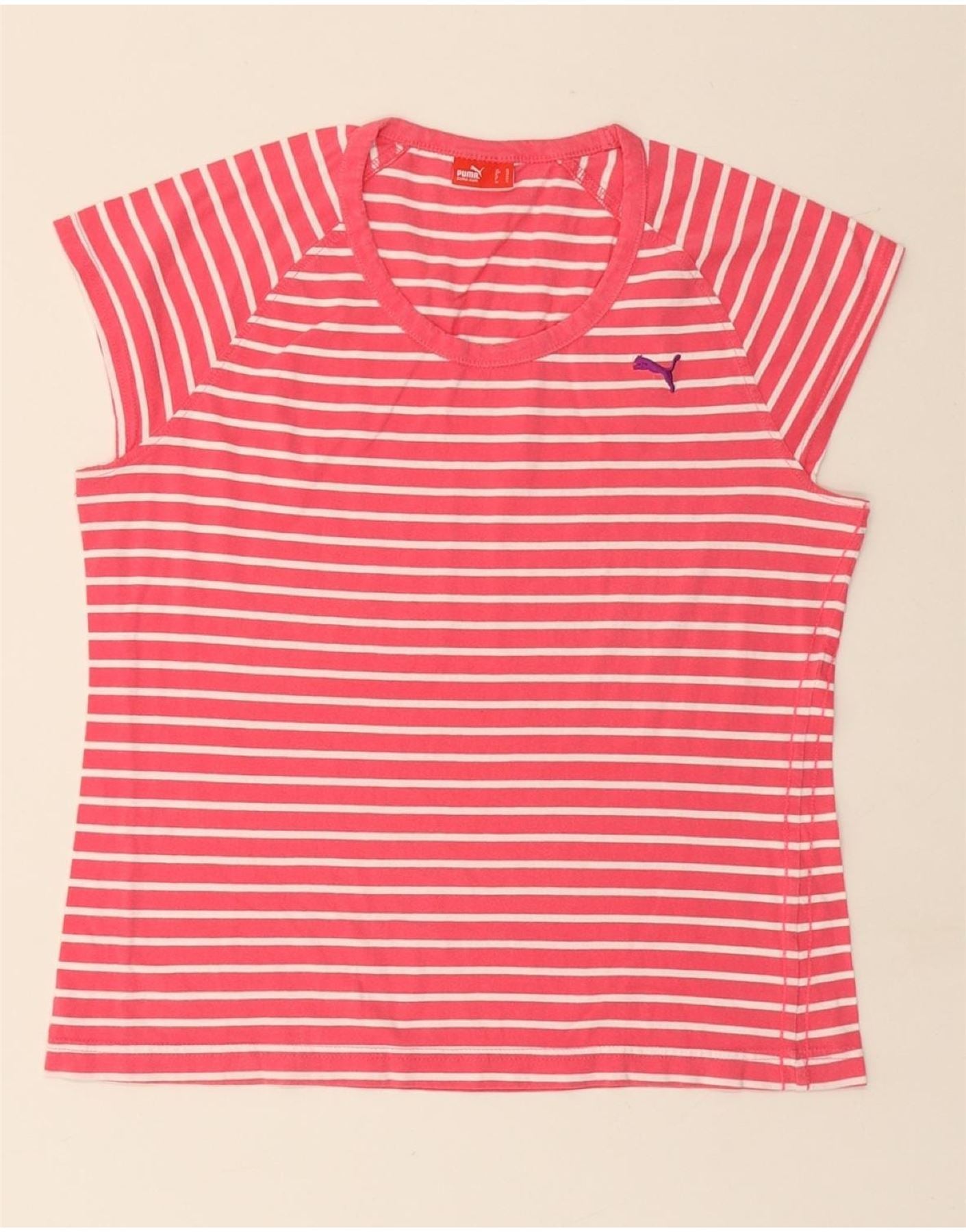 PUMA T-shirt slim pour femme UK 46 Large Rose Rayé