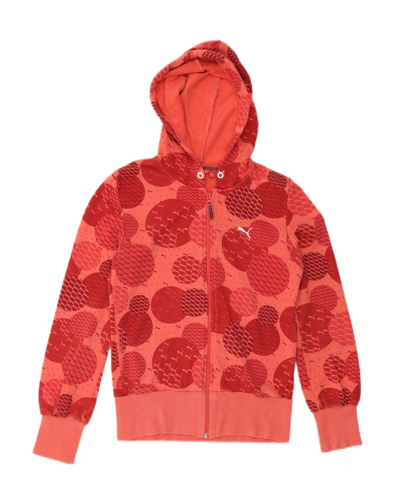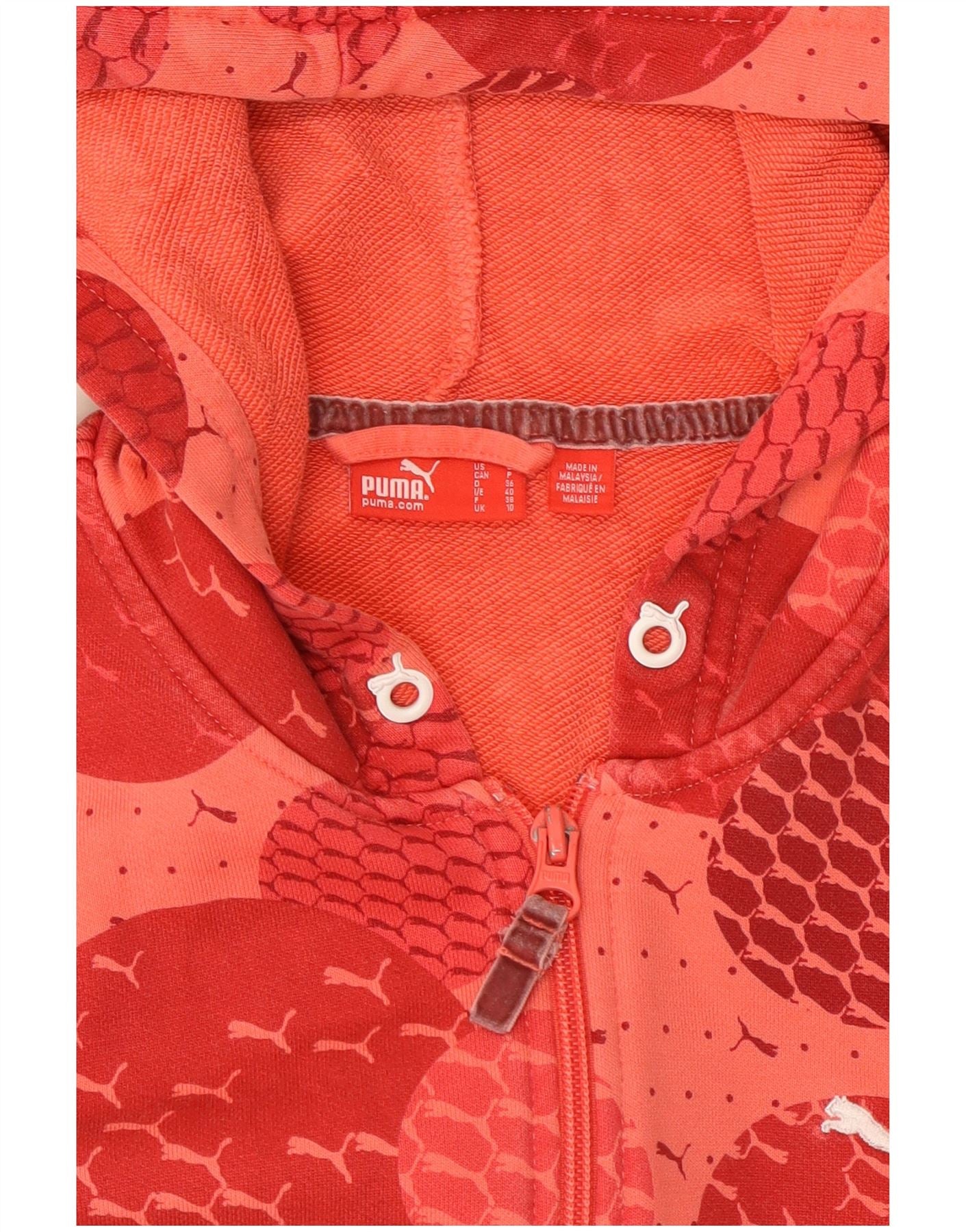 PUMA Pull à capuche zippé pour femme UK 10 Petit coton géométrique rouge