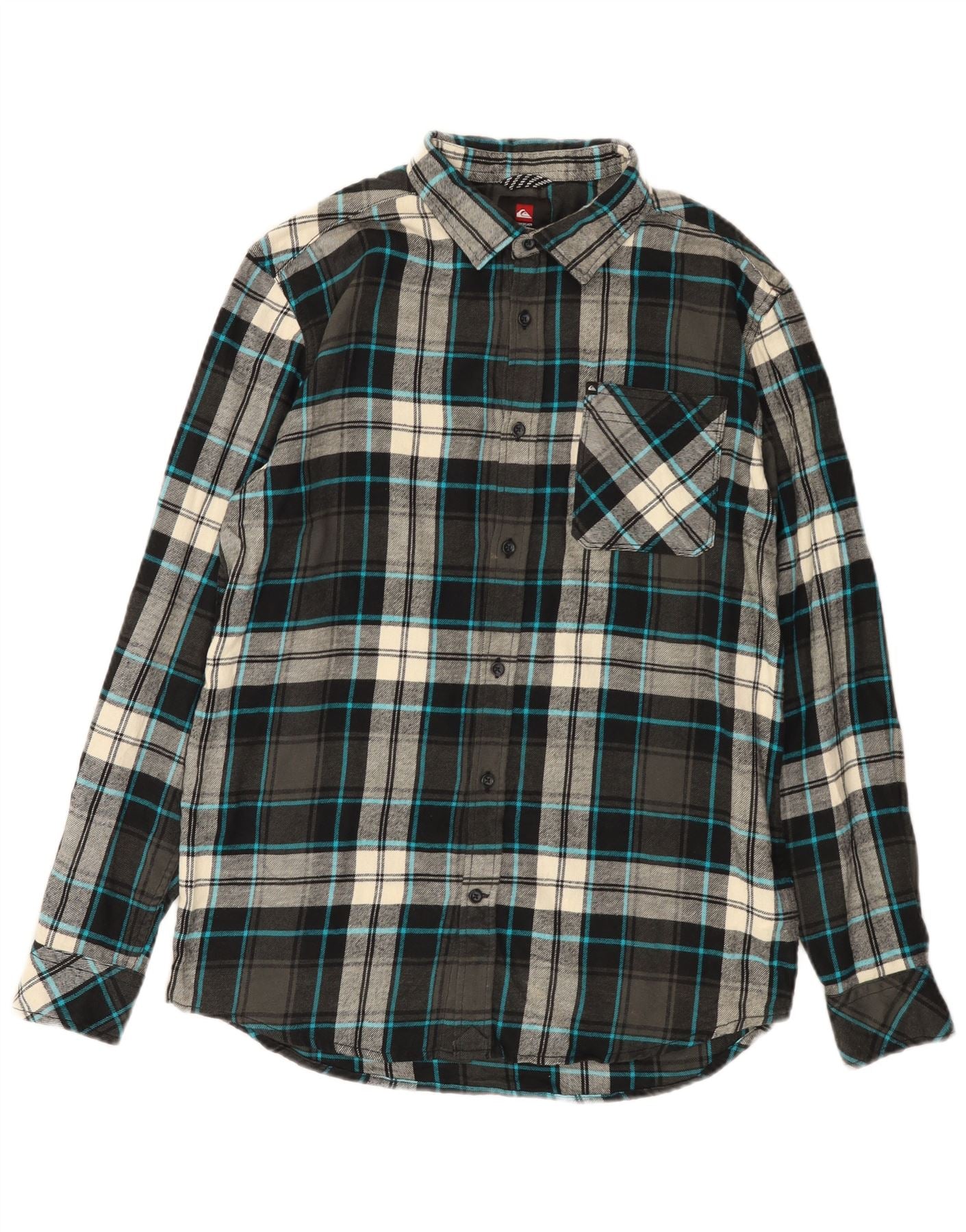 - Description de l'IA : Cette chemise en flanelle pour hommes Quiksilver est fabriquée à partir de flanelle douce 100 % coton. Il présente un motif à carreaux multicolore classique dans des tons noir, gris et bleu. L'encolure à col et le devant entièrement boutonné offrent un look intemporel. Des manches longues avec poignets boutonnés et une poche poitrine ajoutent des détails pratiques. Une coupe régulière garantit un port confortable et une superposition facile. Un logo subtil complète le design.