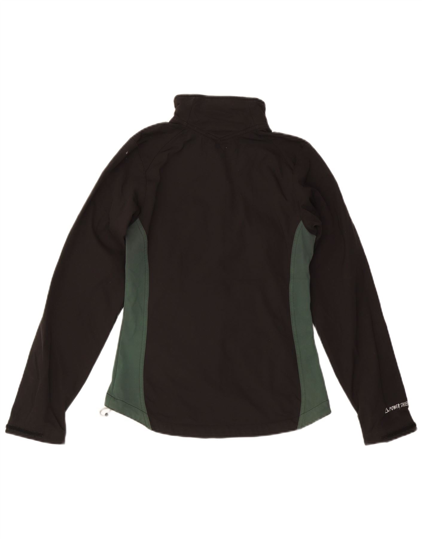 - Description de l'IA : Cette veste coupe-vent Rab pour femme est confectionnée en polaire de polyester noir, offrant une sensation respirante et athlétique. Il présente un col montant et des manches longues pour une couverture complète. La fermeture éclair complète fonctionne sans problème. Les poches zippées offrent un rangement pratique. Les panneaux verts ajoutent un subtil contraste de couleurs. Un logo discret complète le design. La coupe athlétique assure confort et liberté de mouvement, idéale pour la randonnée.