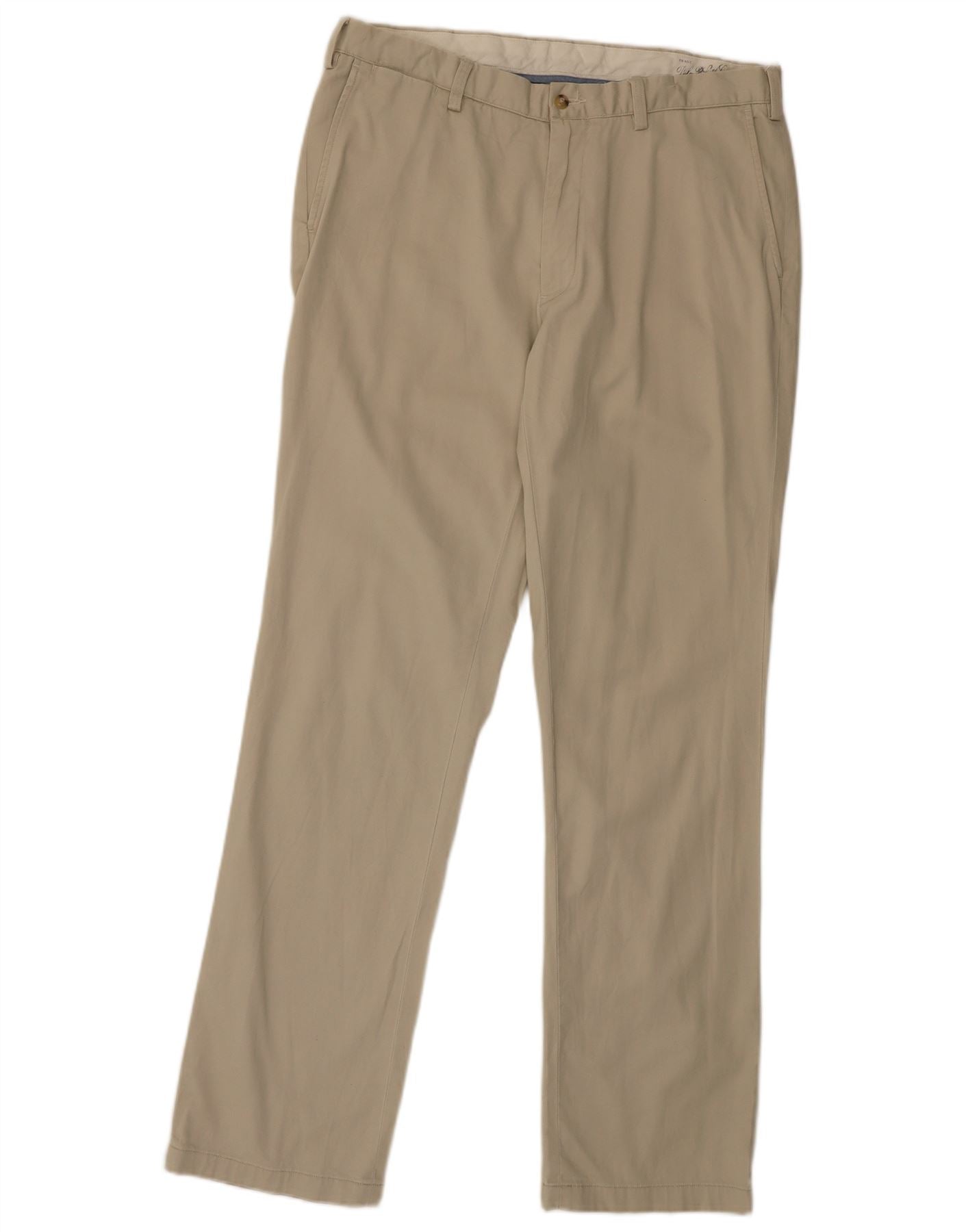 - AI Description: This Ralph Lauren mens Chino Trousers are expertly crafted from 100 percent woven cotton. The beige fabric offers a soft yet durable texture. They feature a classic straight leg and a comfortable classic fit. A button closure ensures a secure fastening. Practical pockets add functional detail, completing this versatile design.