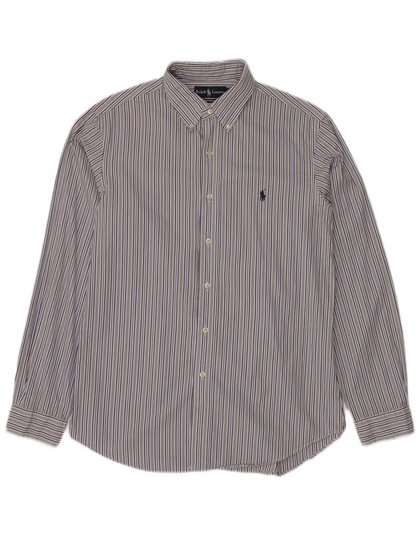 Home > Ralph Lauren > Pour des hommes > Chemises > RALPH LAUREN Chemise ajustée sur mesure pour homme Taille 16 Grand coton rayé bleu