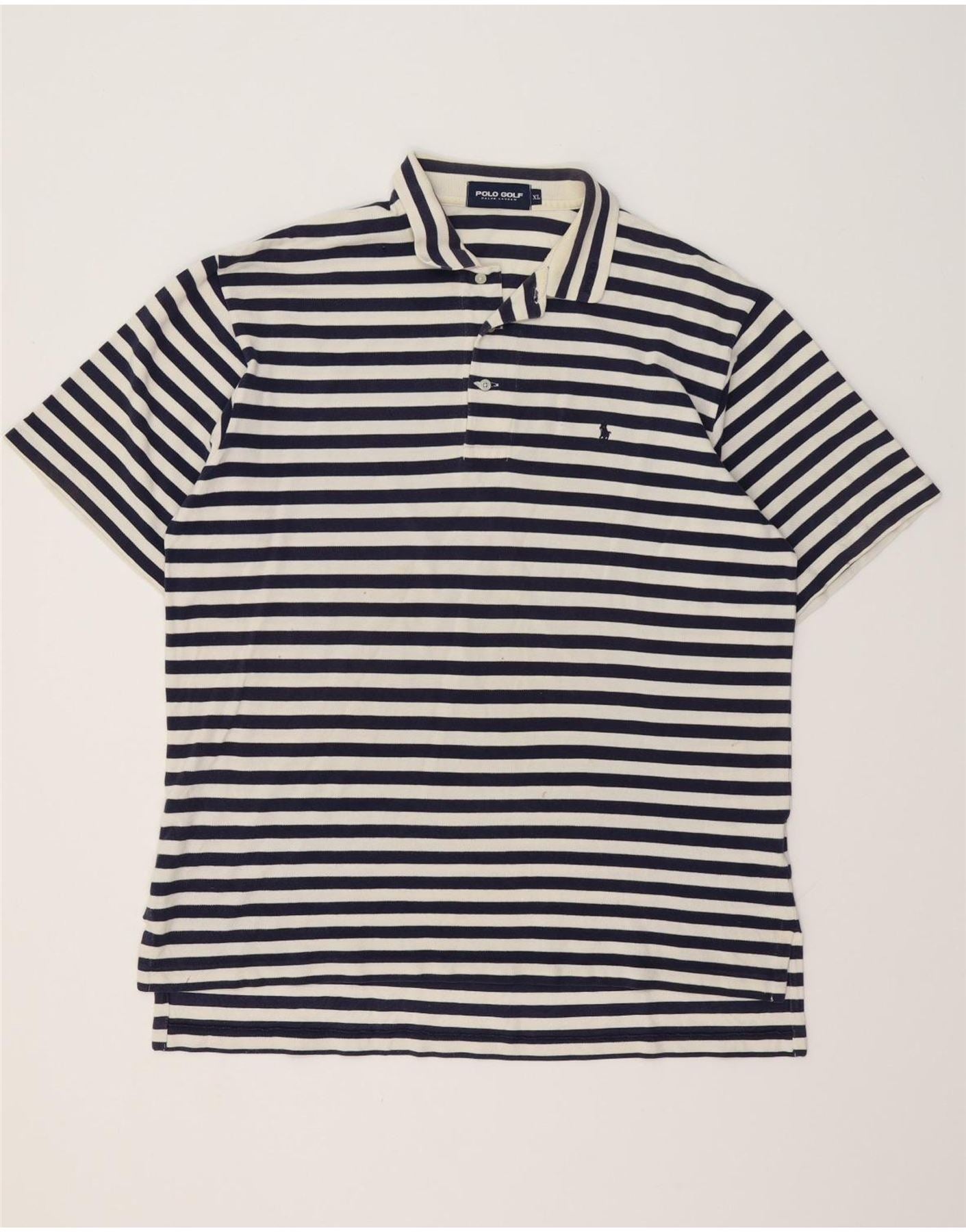 RALPH LAUREN Polo Homme XL Bleu Marine Rayé Coton
