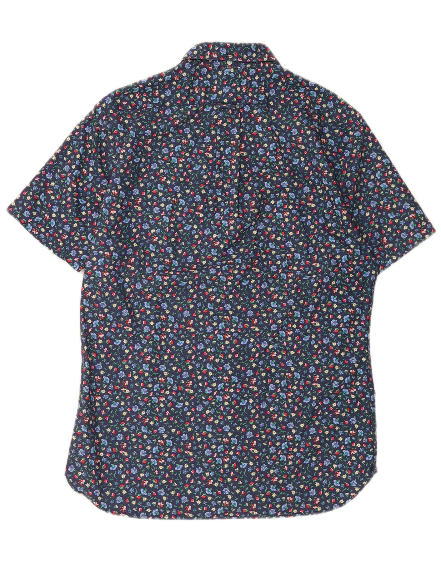 RALPH LAUREN Mens Slim Fit Short Sleeve Shirt Medium Navy Blue Floral