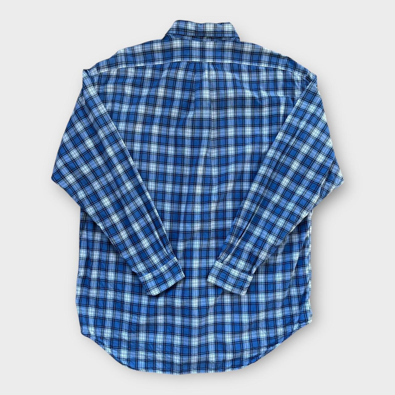 Chemise à manches longues boutonnée Polo Ralph Lauren vintage du début des années 2000 dans un motif à carreaux bleu et blanc avec logo brodé sur la poitrine