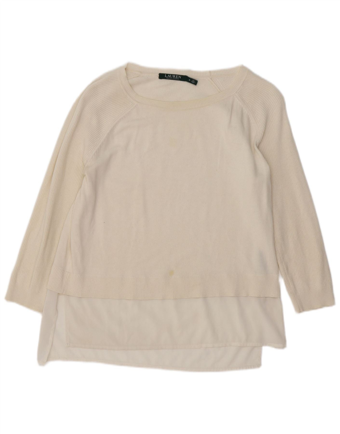 RALPH LAUREN Pull col bateau pour femme UK 14 Medium Off White