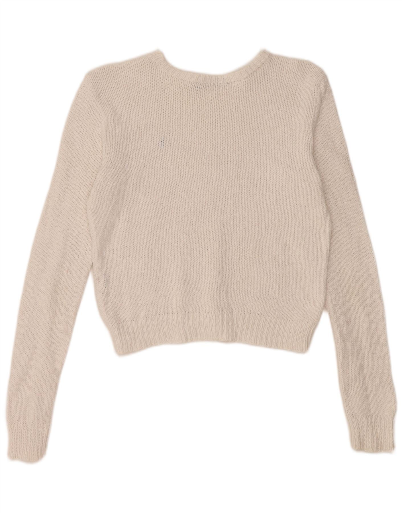 RALPH LAUREN Pull court à col bateau pour femme UK 12 Blanc moyen