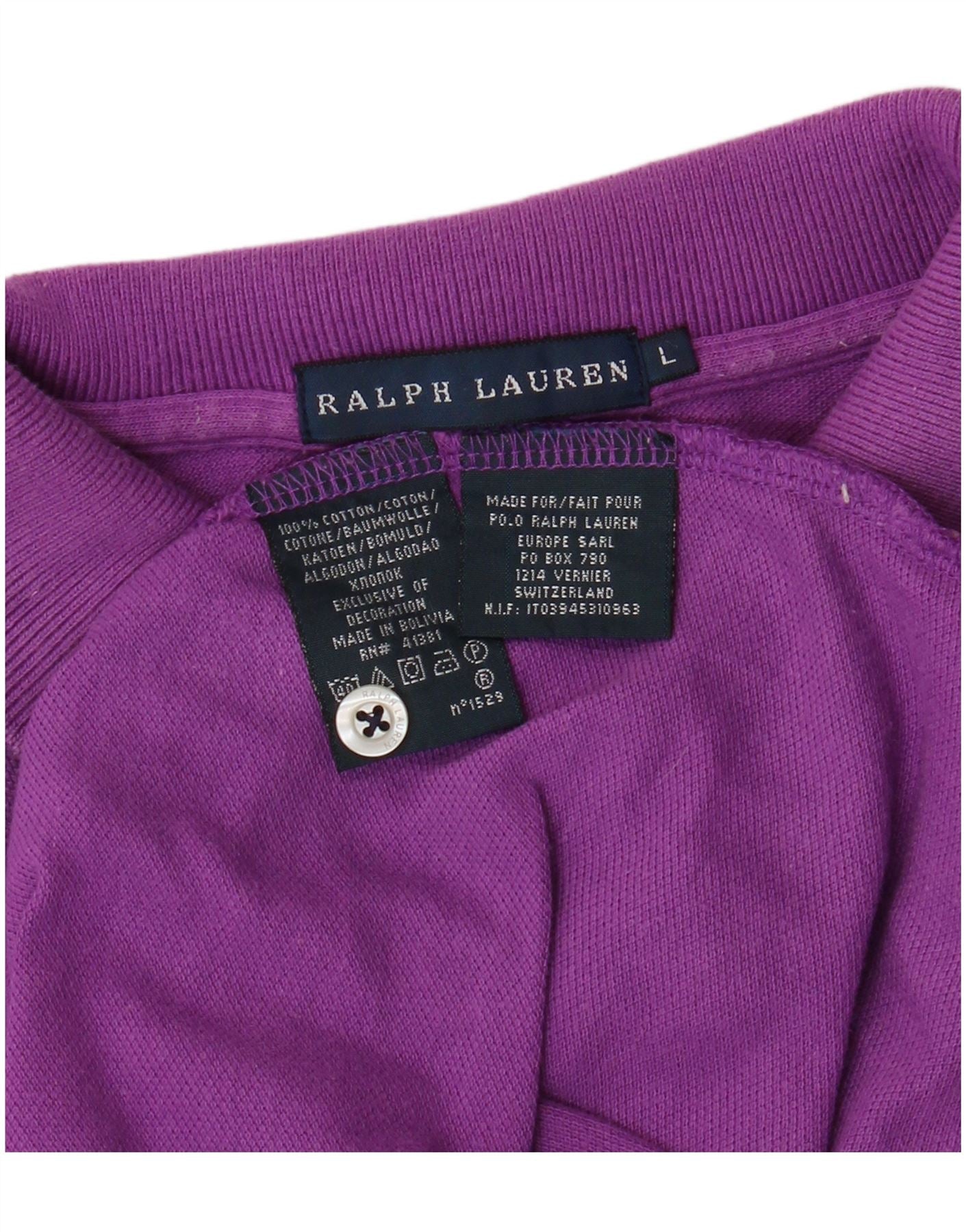 RALPH LAUREN Polo à manches longues pour femme UK 16 Large Violet Coton